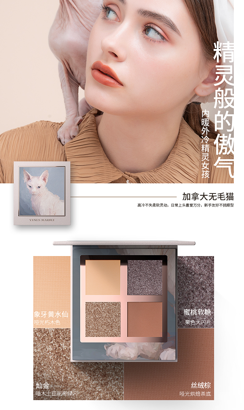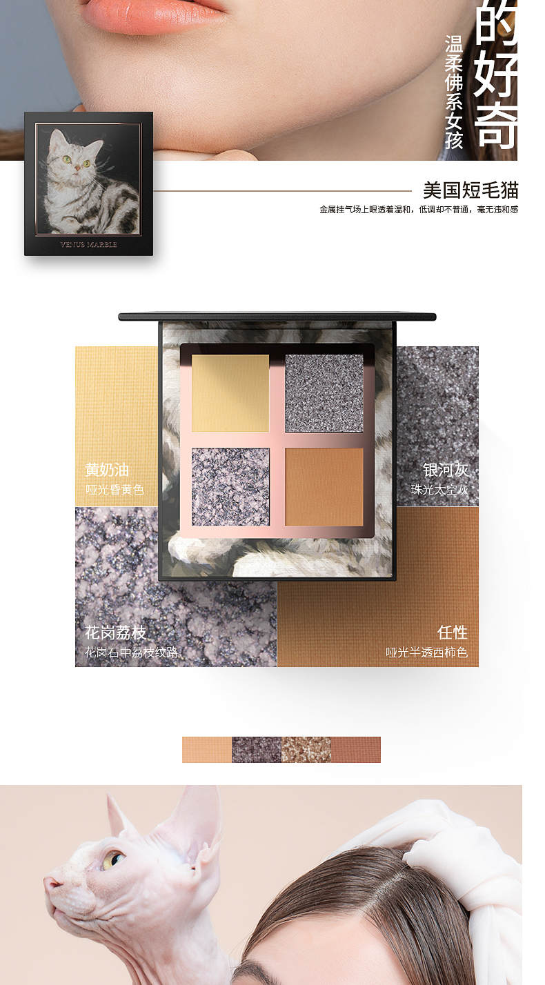【买一赠一 颜色随机】VENUS MARBLE猫咪四色眼影盘 #月光石的亲密 暹罗猫