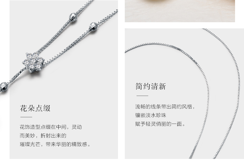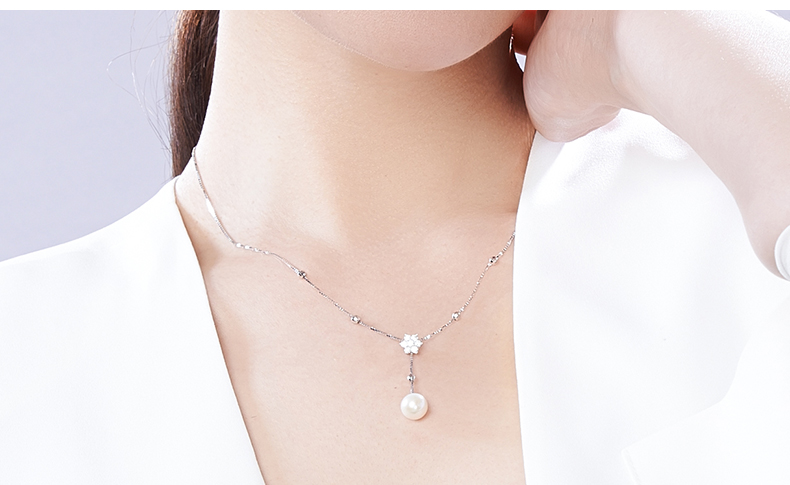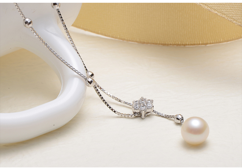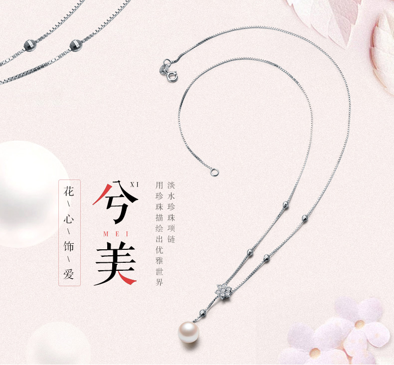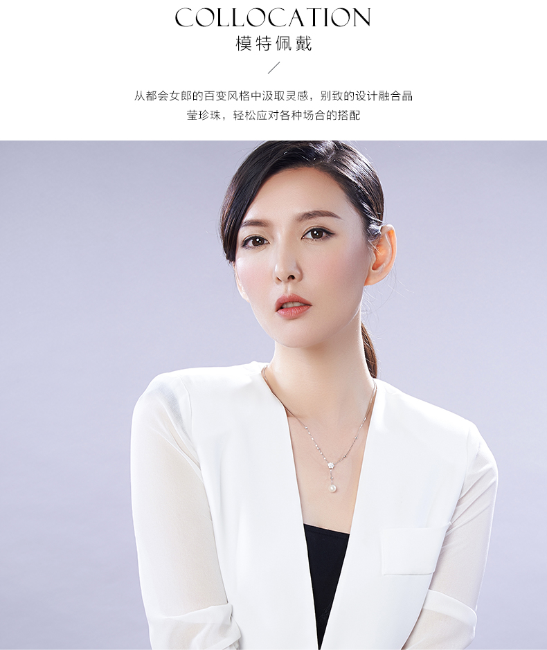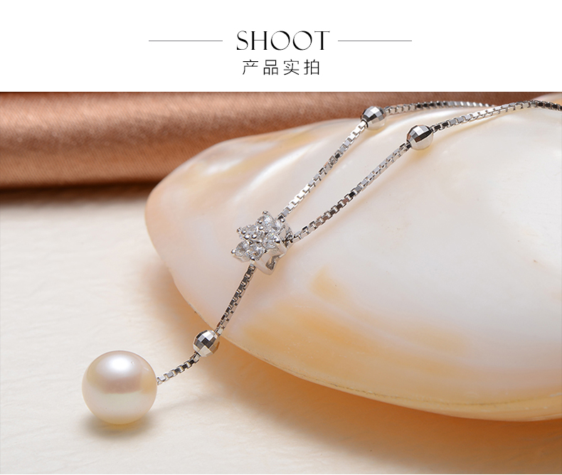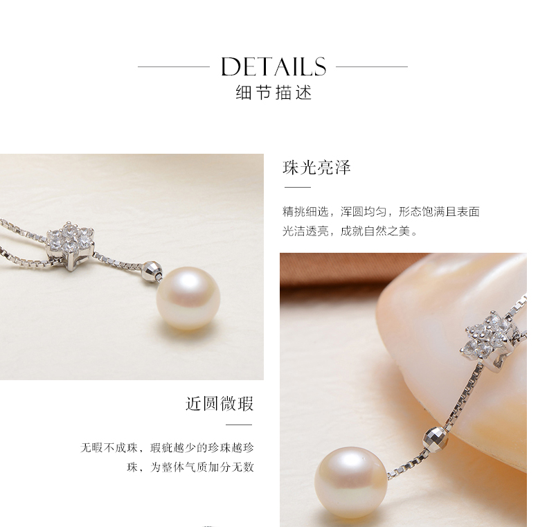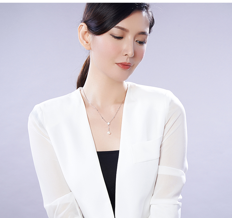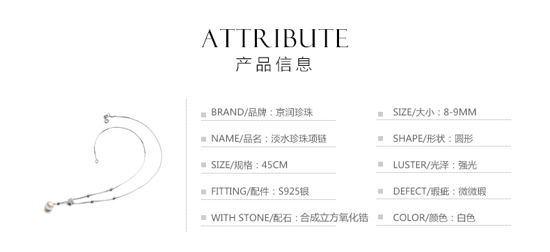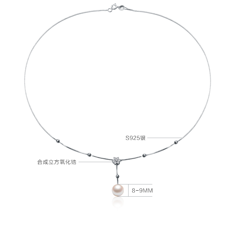 京润珍珠 兮美 8-9mm圆 S925银镶淡水珍珠吊珠项链