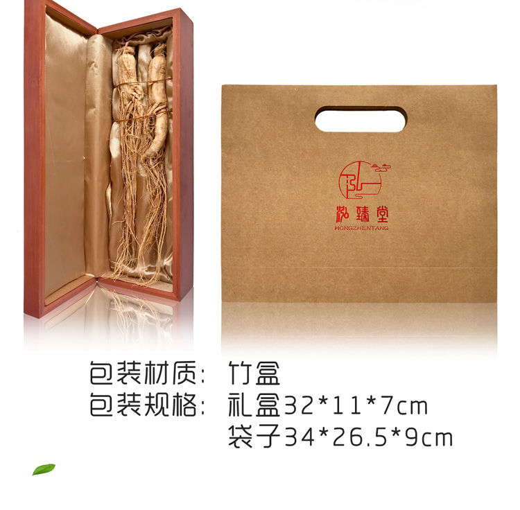 泓臻堂 特大人参礼盒80克/盒 两根装长白山人参 边条参