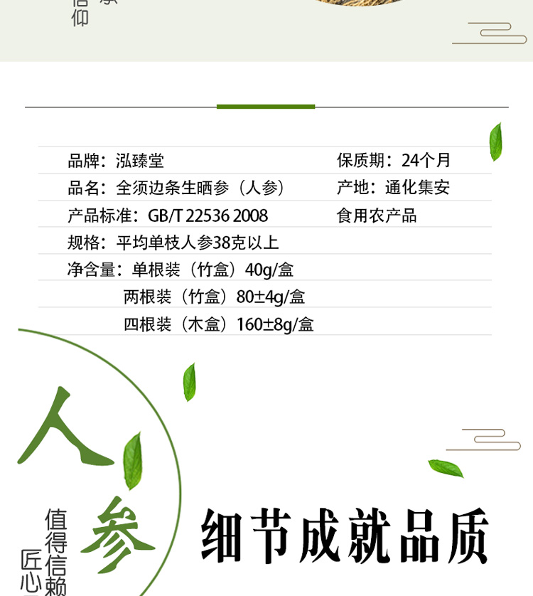 您所在的位置:首页 > 休闲食品  > 休闲食品 > 其他  > 泓臻堂 特大人参礼盒80克/盒 两根装长白山人参 边条参