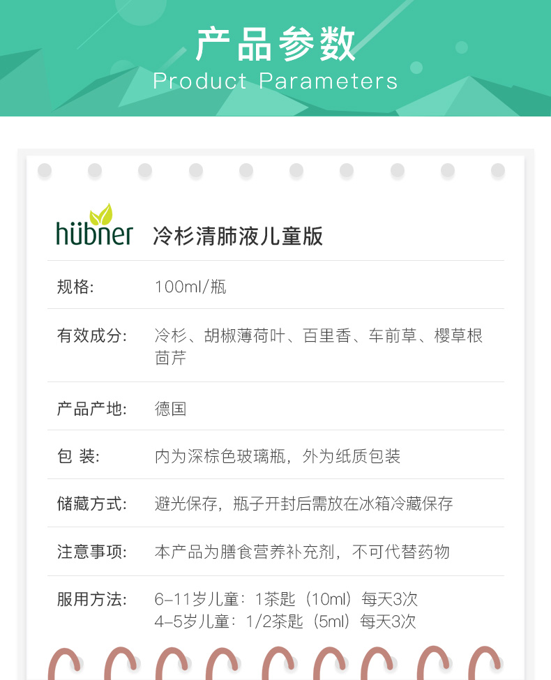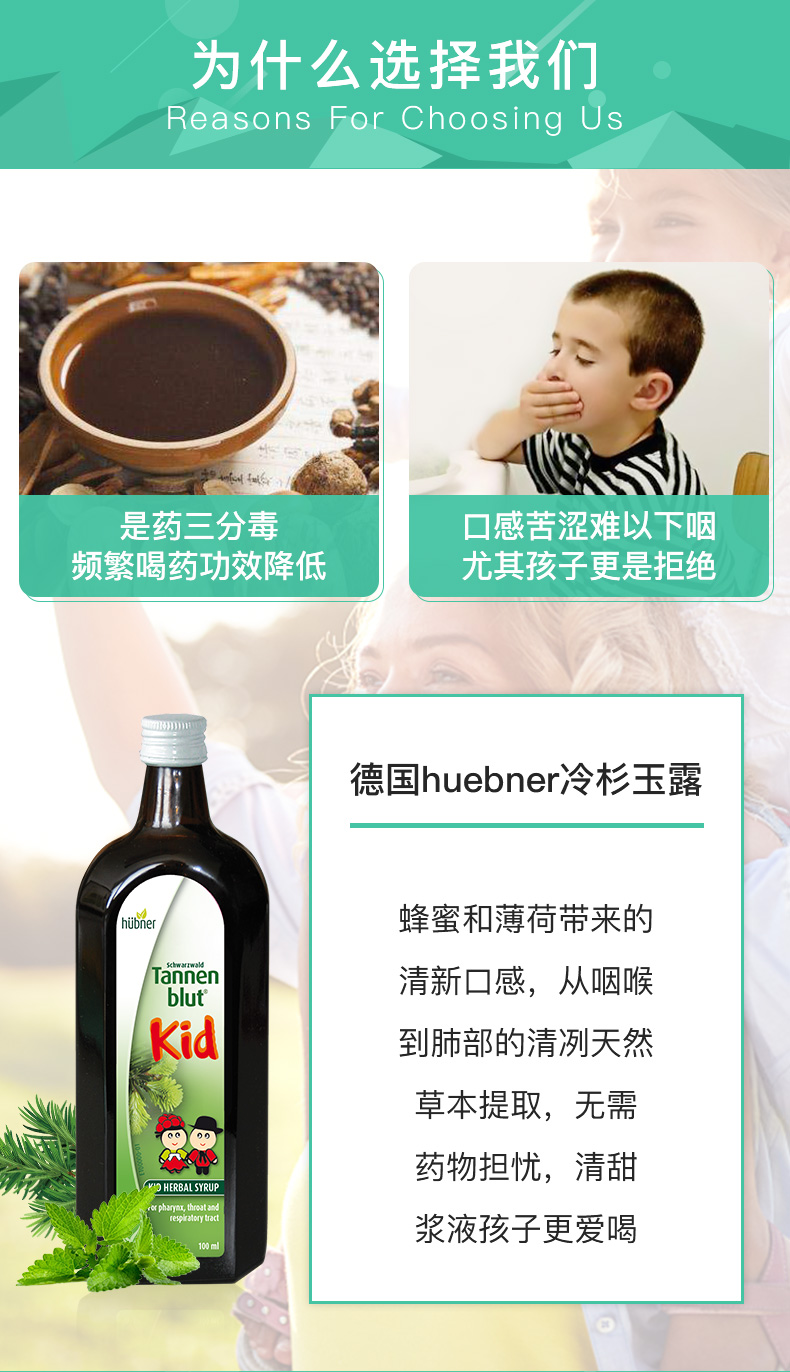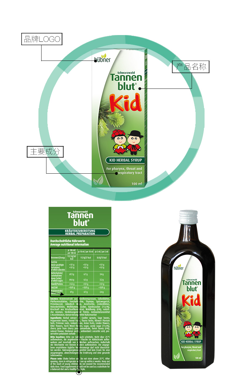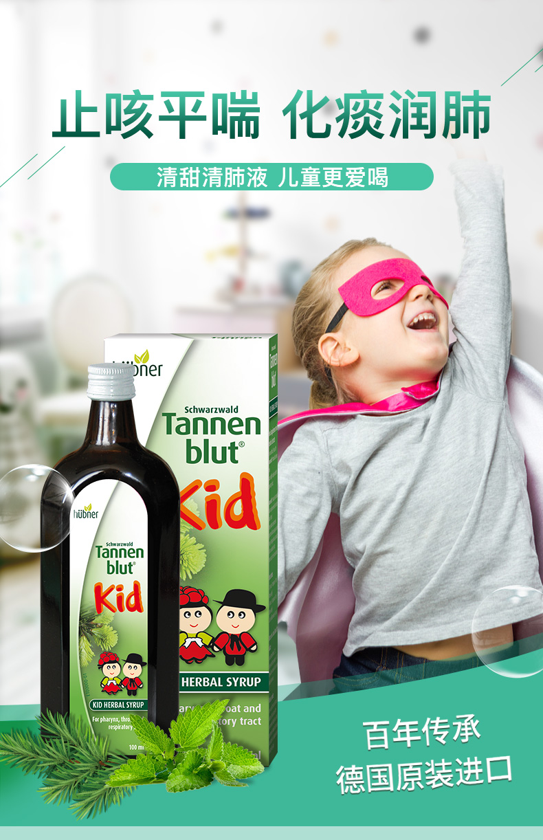 德国huebner郝柏娜儿童冷杉玉露草本清肺液100ml
