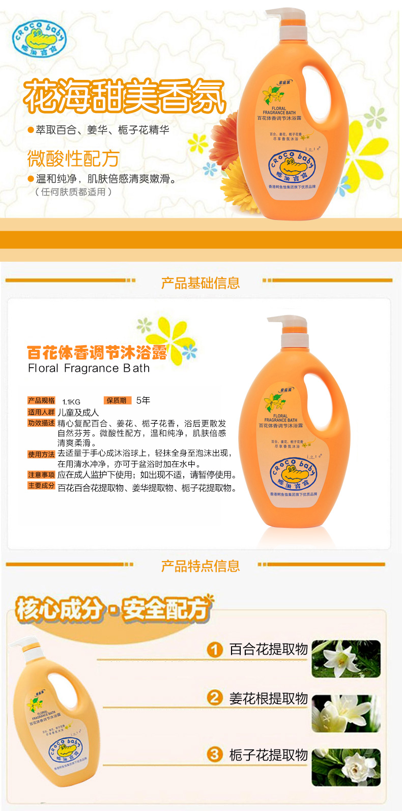 鳄鱼宝宝 百花体香调节沐浴露1.1kg