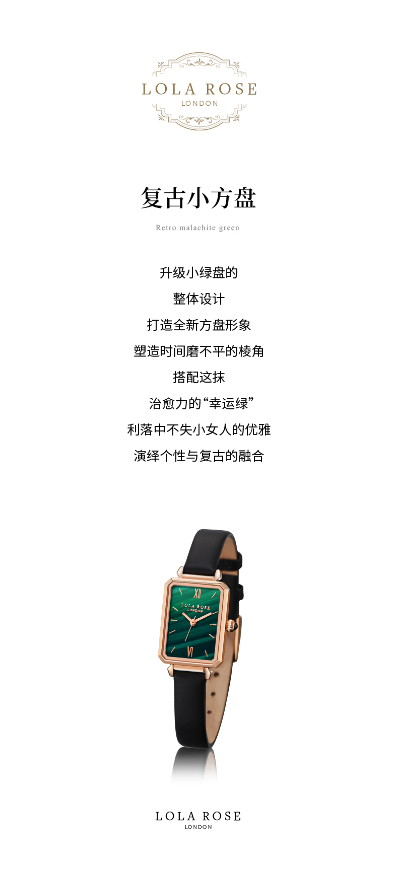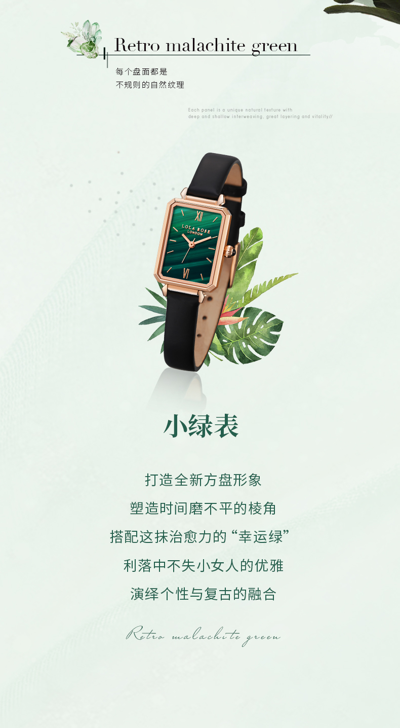 Lola Rose复古小方盘女表小绿表