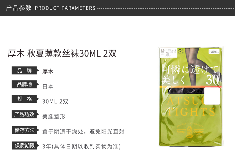 日本厚木 秋夏薄款丝袜30ML 2双