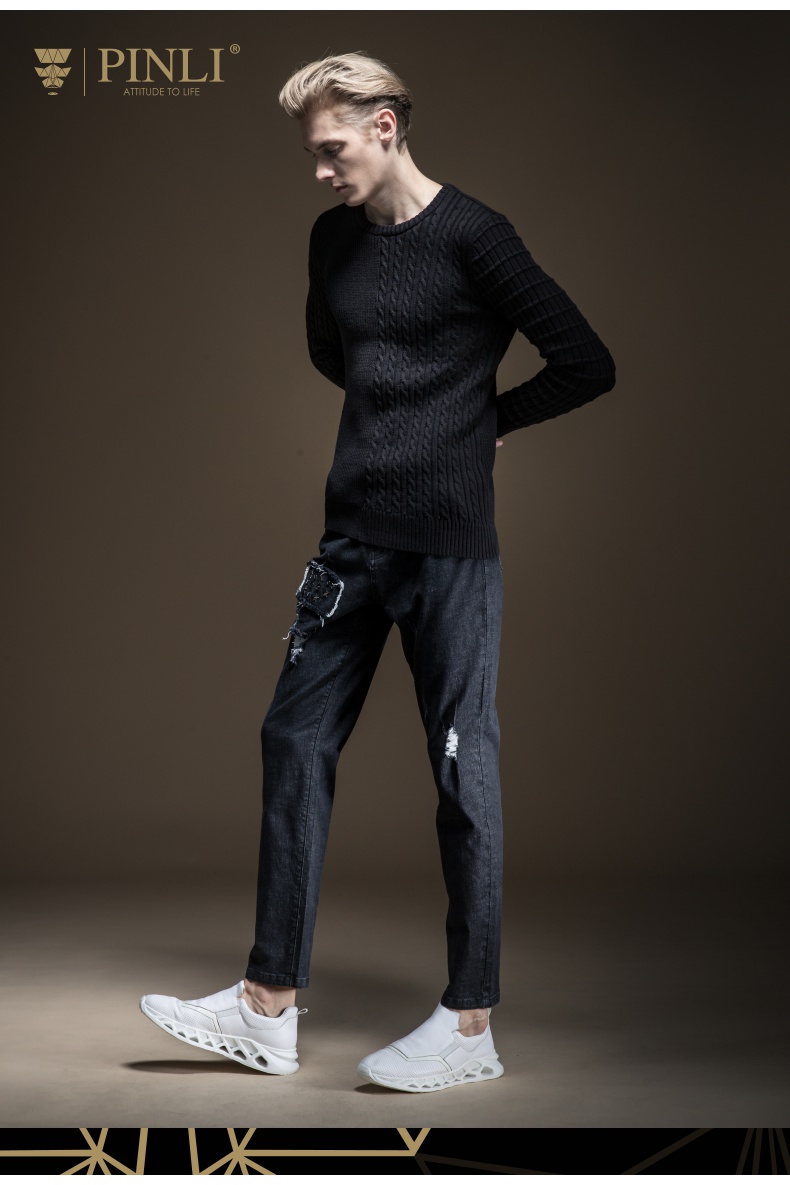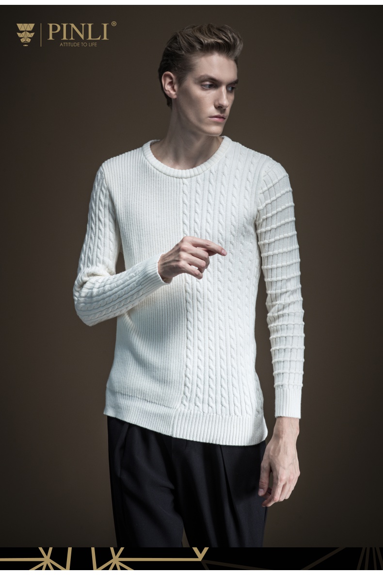 PINLI品立2019秋季新款男装圆领套头毛衣提花针织衫潮B193210083 白色 XL