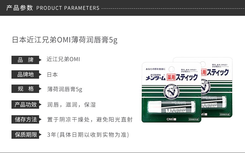 MENTURM/近江兄弟 OMI薄荷无色滋润持久保湿护唇润唇膏 5G