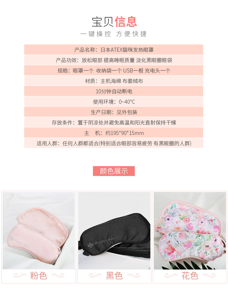 【新品推荐】【香港直邮】日本 Atex 新款AX-KX511 热敷 蒸汽 睡眠按摩眼罩 (充电式) 粉色