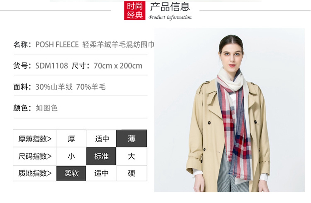 您所在的位置:首页 > 服饰内衣  > 服饰配件 > 女士丝巾/围巾/披肩  > 【澳洲直邮】Posh Fleece 澳洲羊绒羊毛混纺围巾 SDM1108 格子 70*200