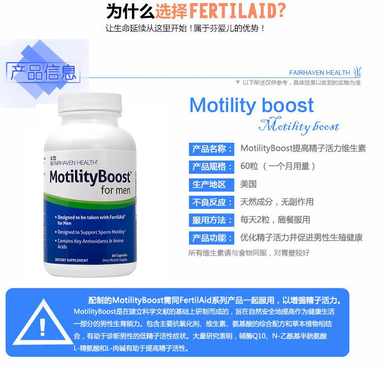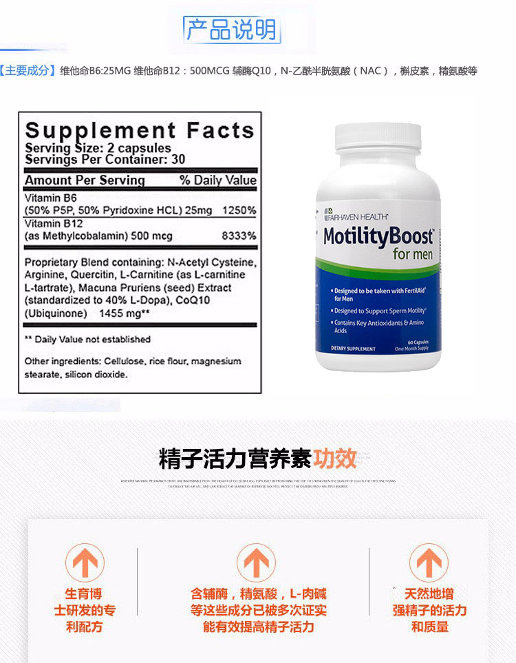美国MotilityBoost for Men精子活力营养素