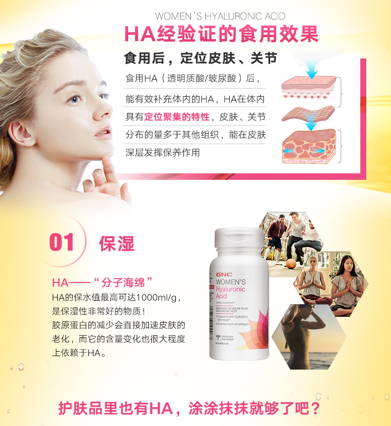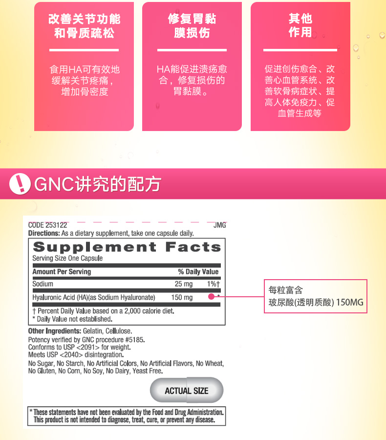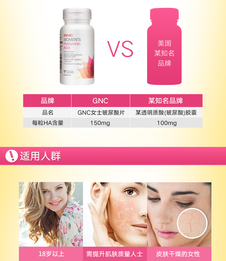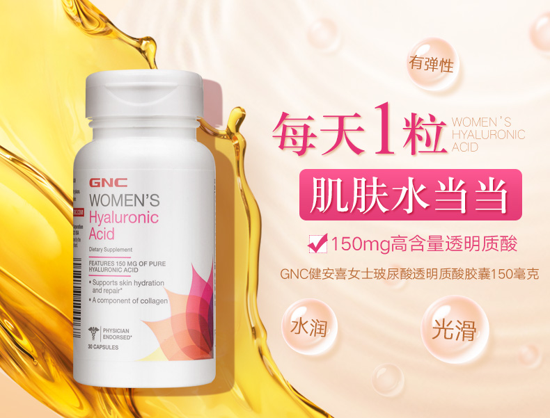 美国健安喜GNC女士玻尿酸透明质酸片150毫克
