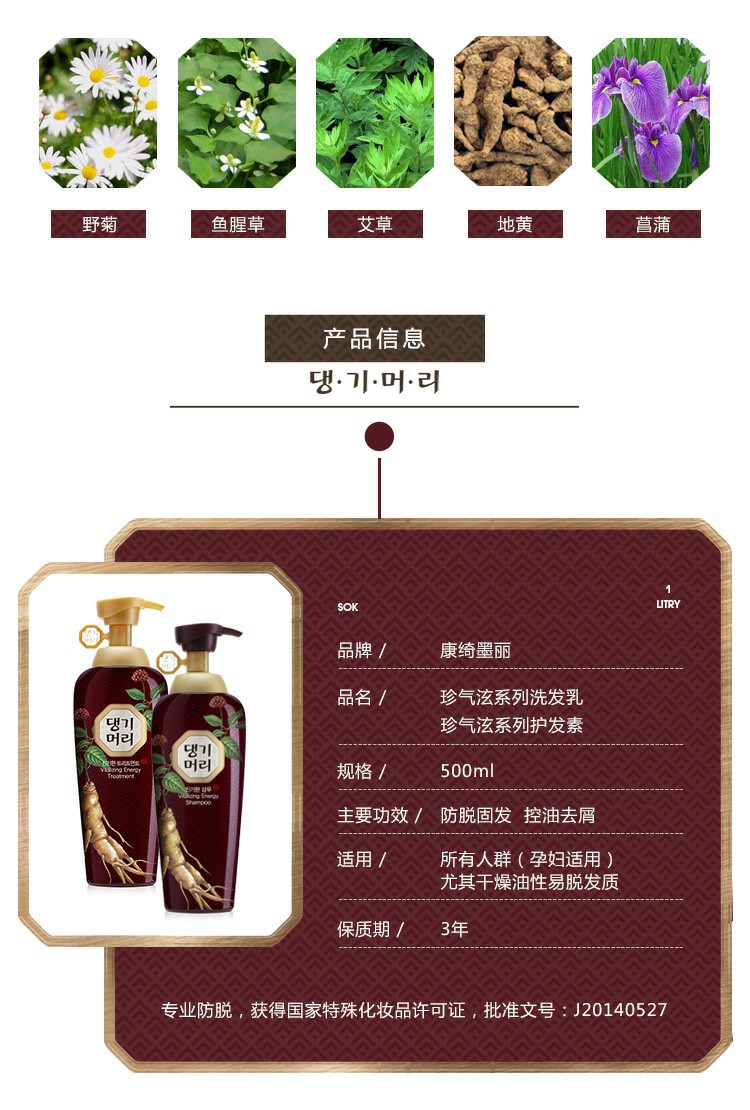 韩国康绮墨丽DAENG GI MEO RI珍气泫两件套洗发水+护发素500ml+500ml
