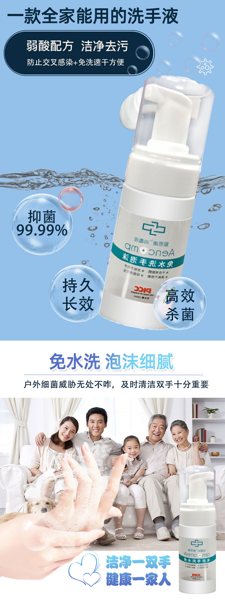 爱恩康除菌杀毒消毒免水洗洗手液泡沫100ML/瓶必抢