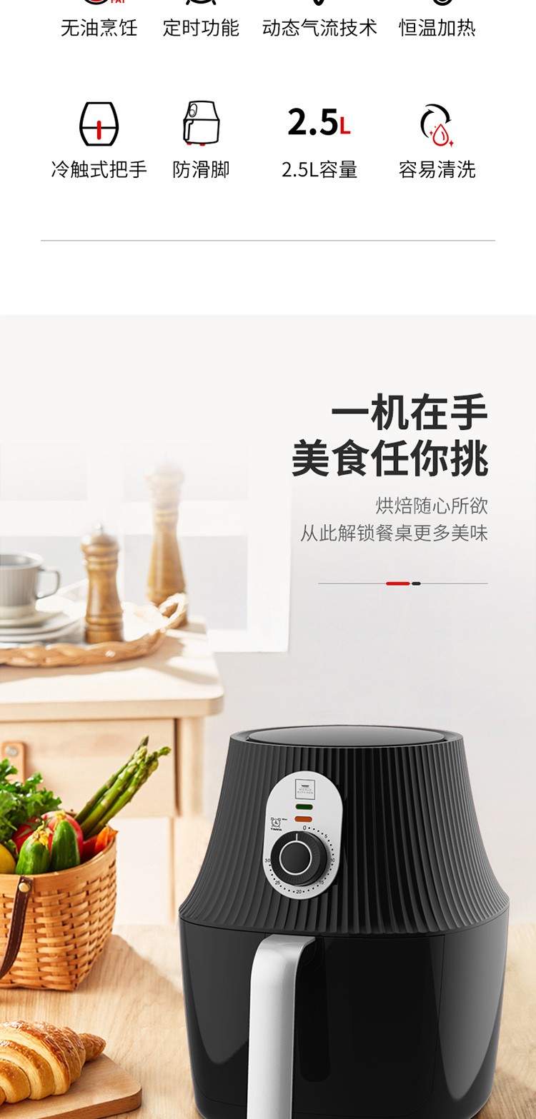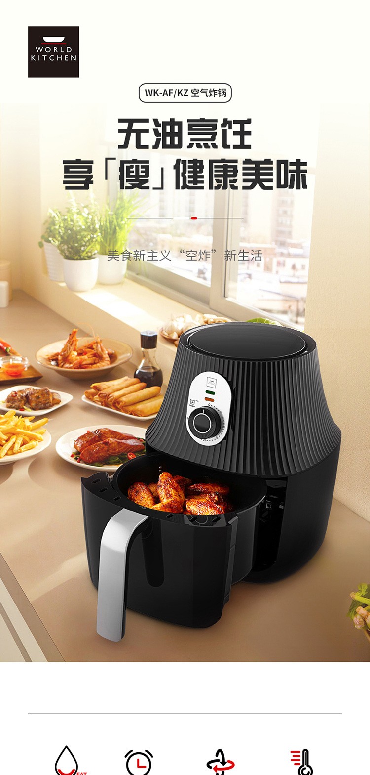 您所在的位置:首页 > 家用电器  > 厨房小电 > 空气炸锅  > 【授权商品】WORLD KITCHEN 美国康宁 WK-AF/KZ 空气炸锅高温脱脂不沾油层2.5L大容量