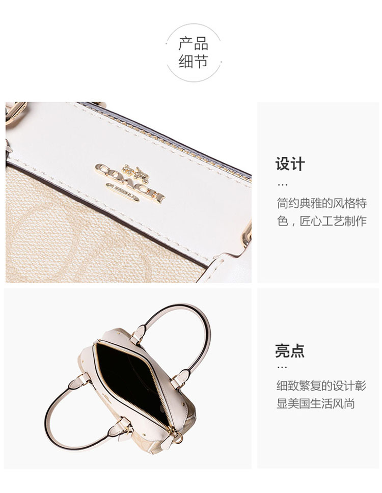 【美国直邮】COACH蔻驰女士老花小号单肩手提斜挎包波士顿包F32203 卡其色配白色