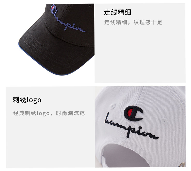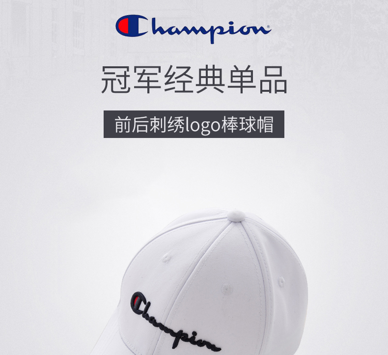 美国冠军Champion白色刺绣logo棒球帽鸭舌帽