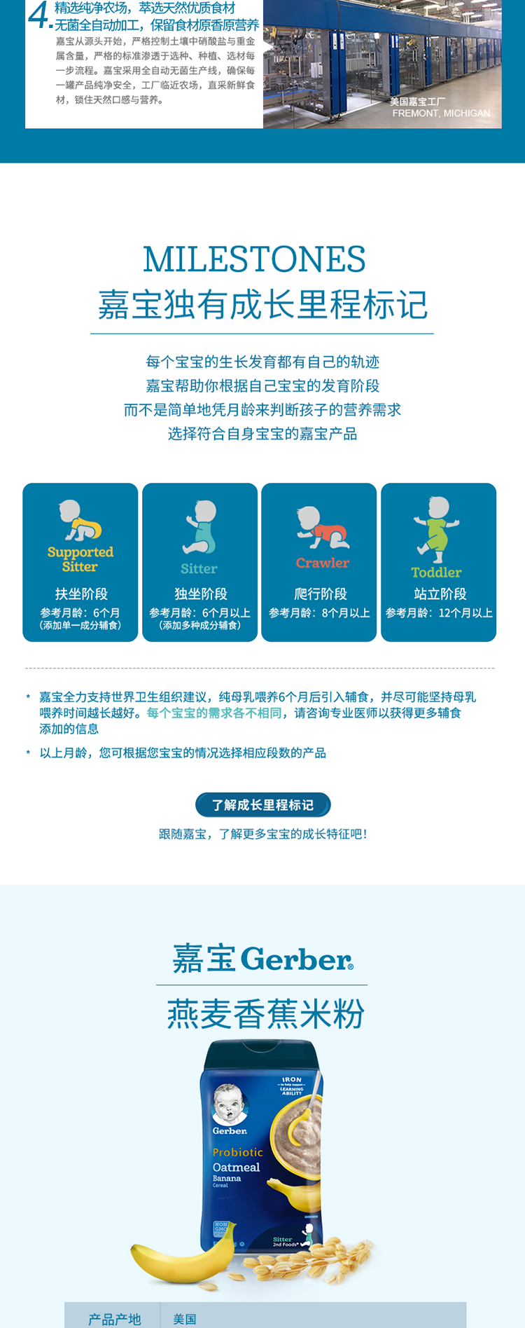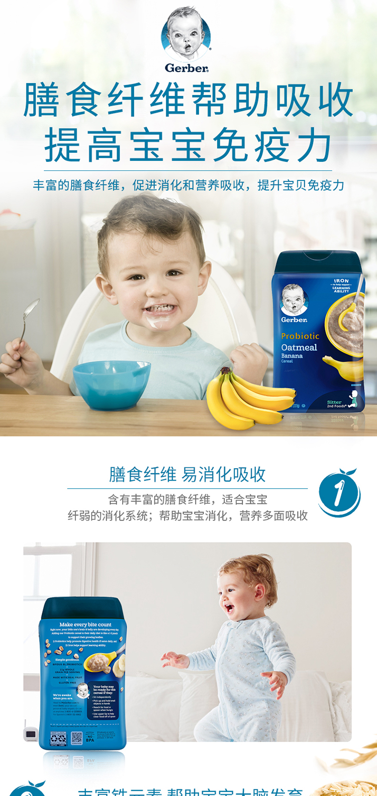 您所在的位置:首页 > 母婴用品  > 营养辅食 > 米粉/菜粉  > 【2罐/组】美国嘉宝二段燕麦香蕉益生菌米粉227g