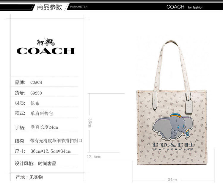 【美国直邮】COACH蔻驰帆布印花小飞象托特包单肩手提包69250
