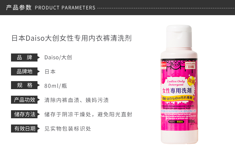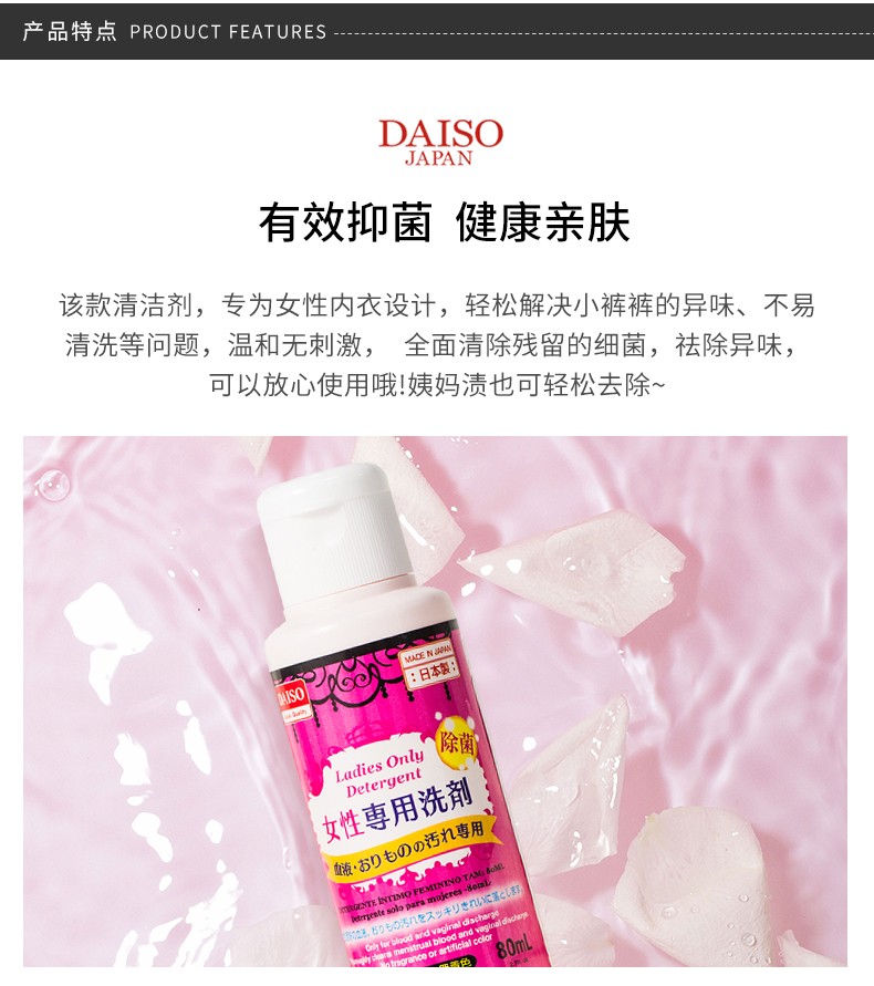 您所在的位置:首页 > 个人护理  > 女性护理 > 其它女性护理产品  > 日本DAISO大创女性专用内衣清洗剂80ml