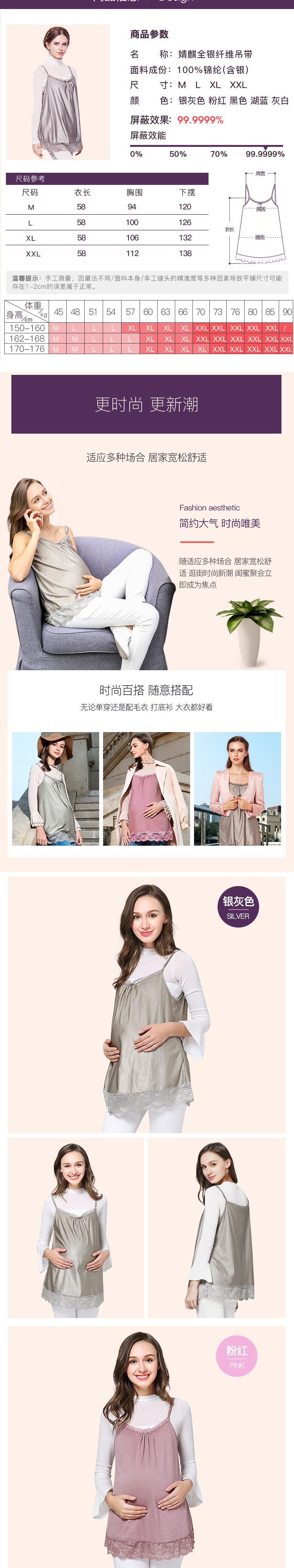 婧麒全银纤维吊带防辐射孕妇装 湖蓝 L码