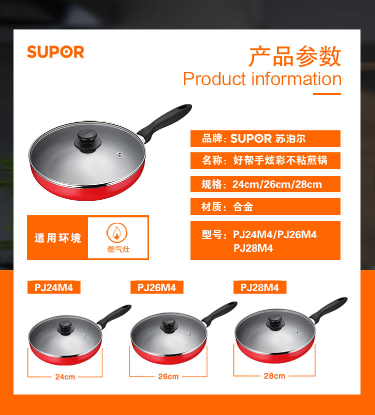苏泊尔厨具PJ26M4电磁炉锅炒锅无烟锅煎锅平底锅26cm明火专用