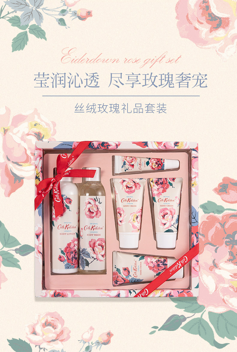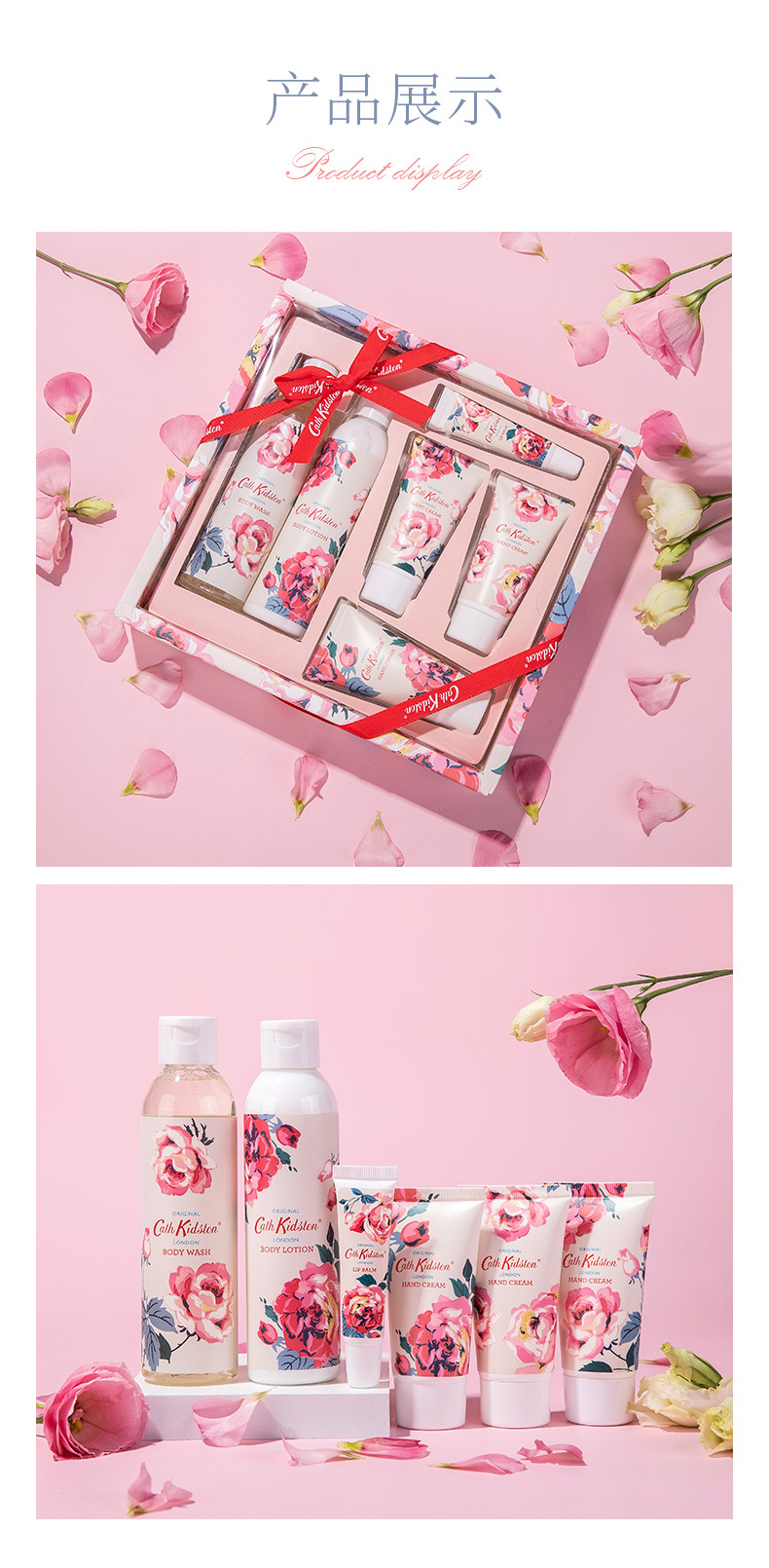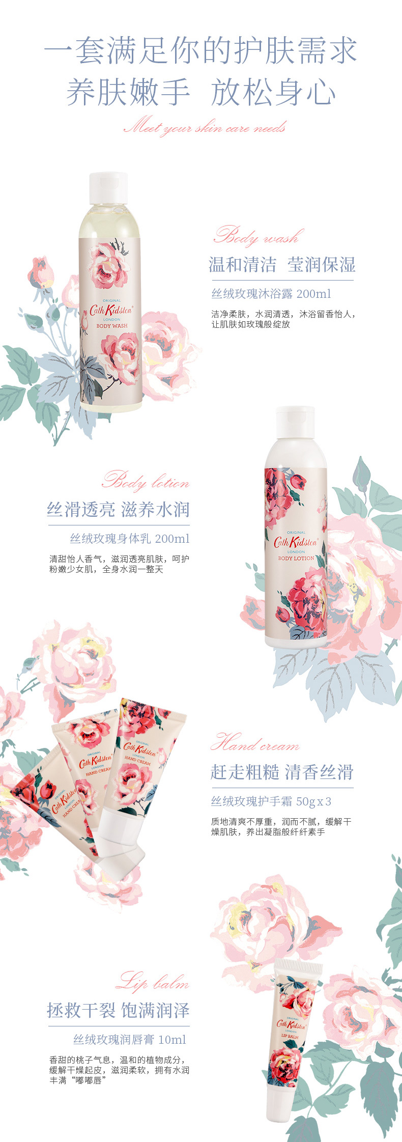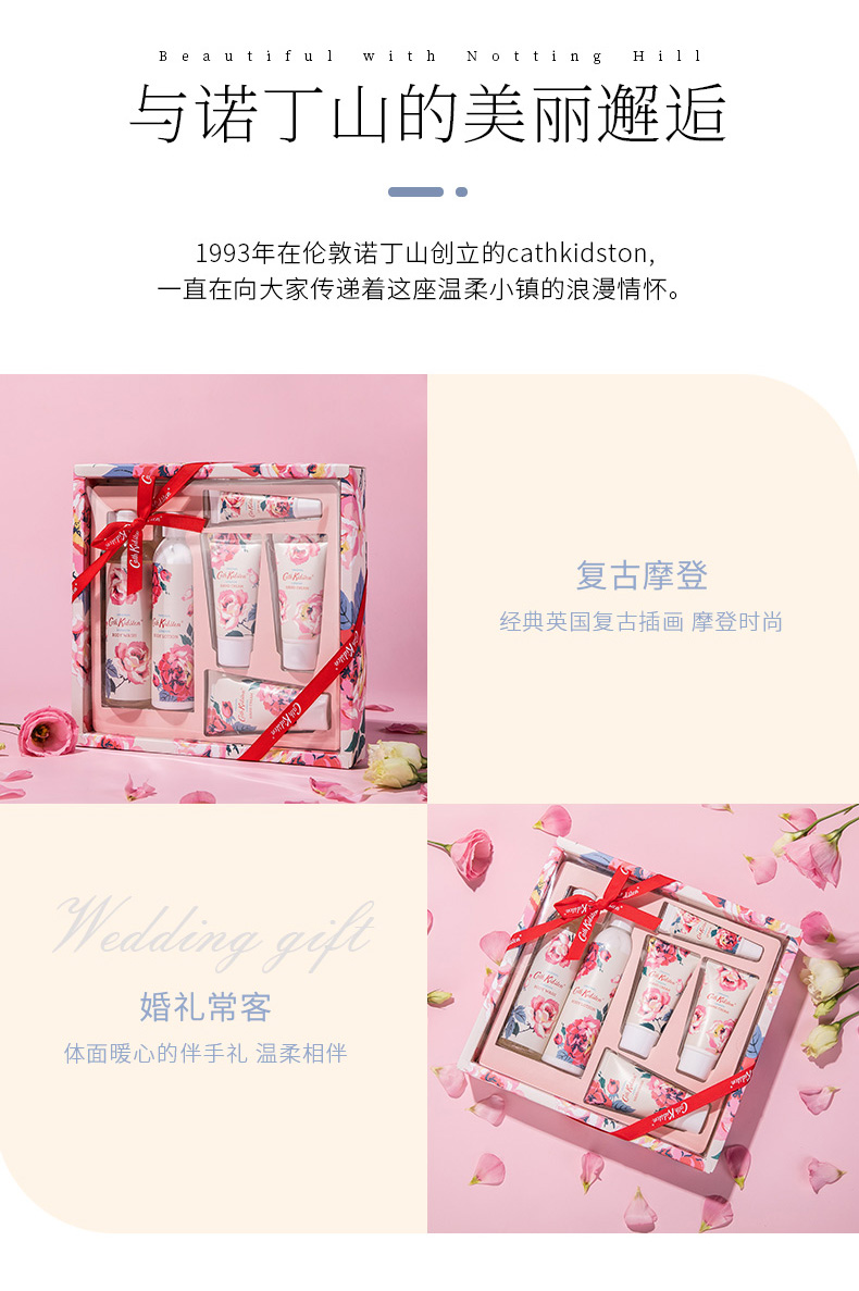 CathKidston丝绒玫瑰身体护理礼盒套装(沐浴露200ml*1支,身体乳200g*1支,护手霜50g*3支,润唇膏10ml*1支)