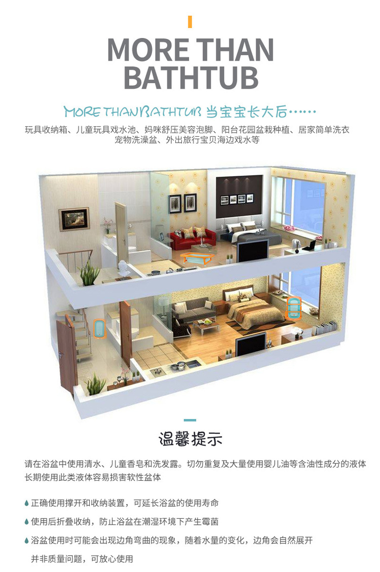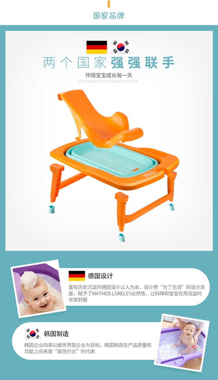 韩国原产Mathos Loreley婴儿浴盆澡盆便携感温可折叠浴盆 橙色 展开前:87.5*58*9cm,展开后:87.5*58*23cm