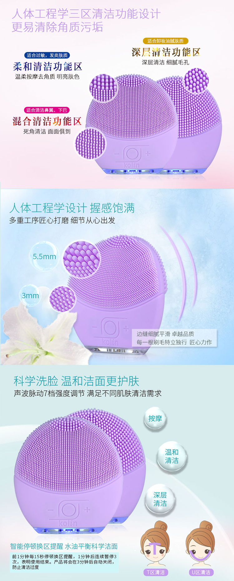 中国台湾kolin硅胶电动洁面仪SEC225红色七档调节