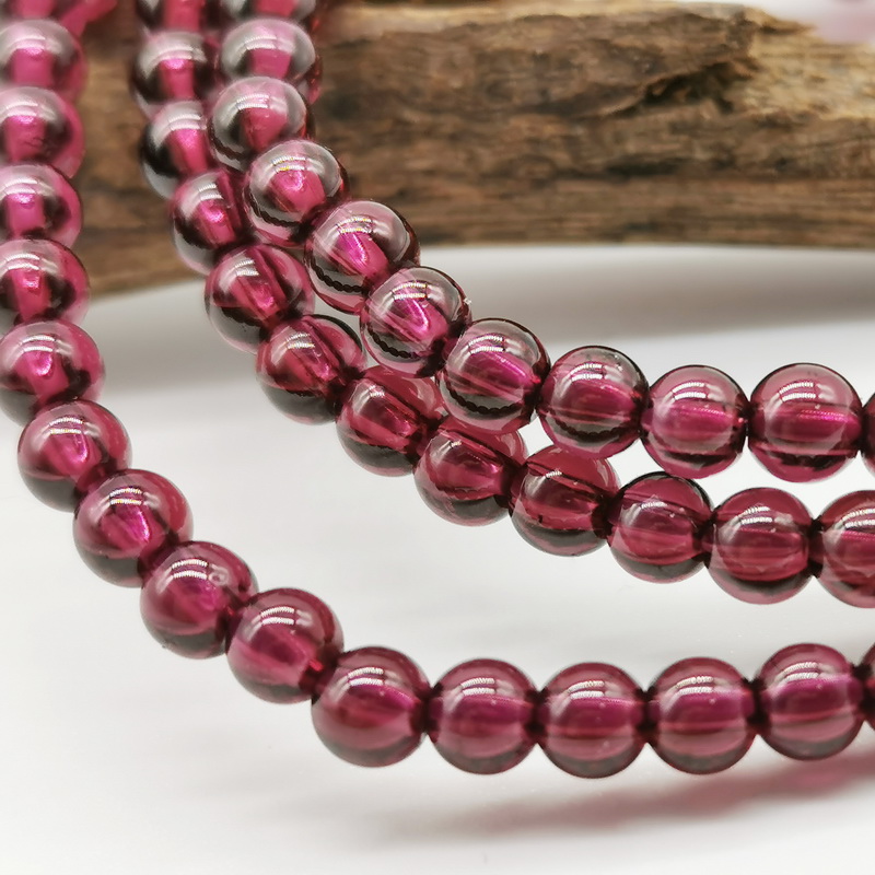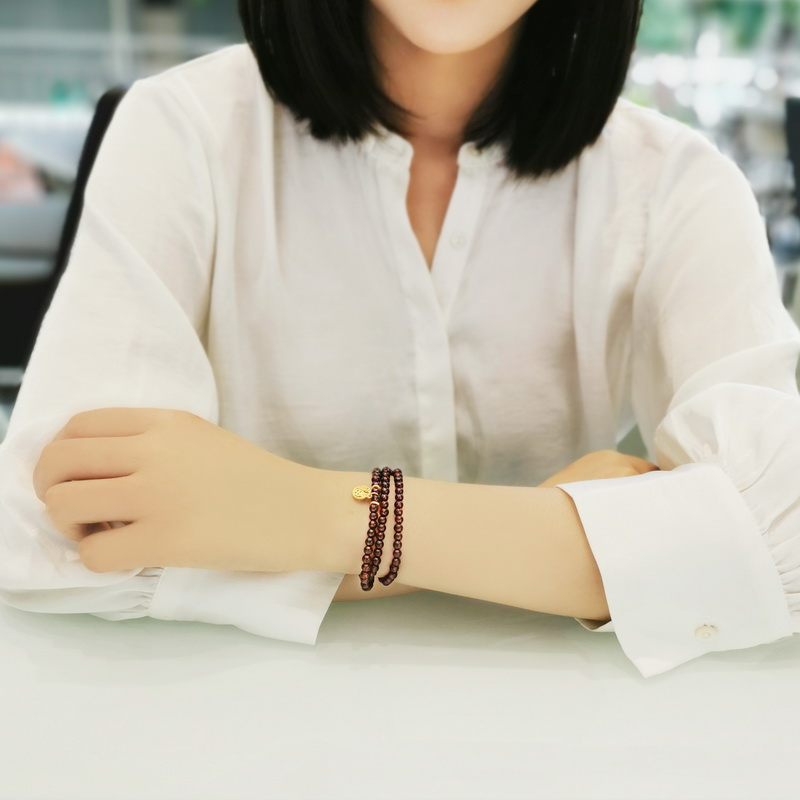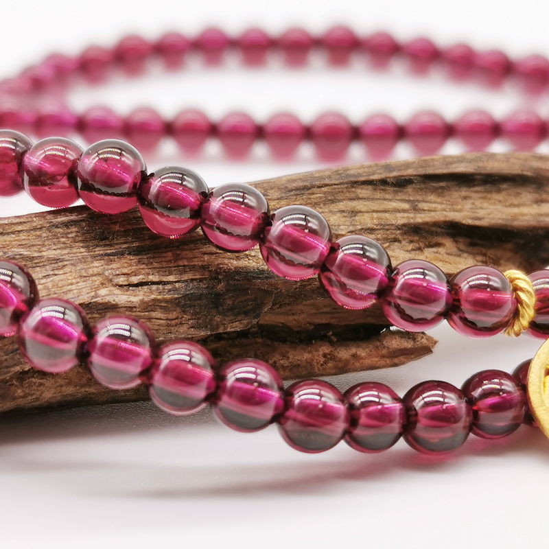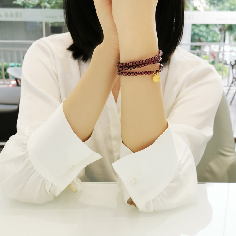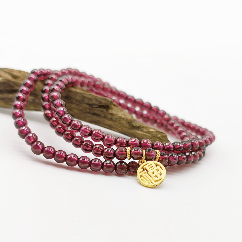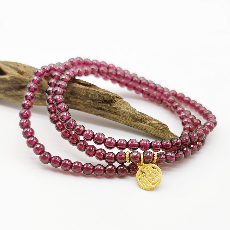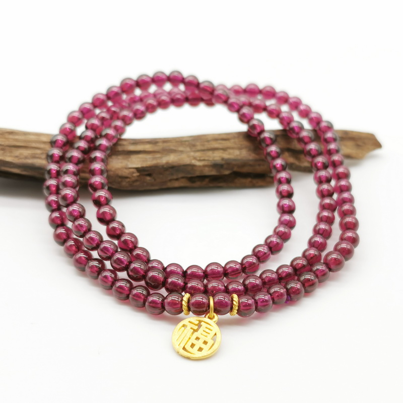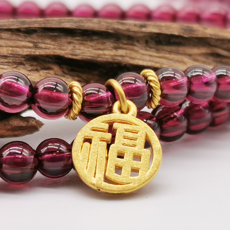 四福珠宝 足金福牌紫牙乌石榴石三圈手串