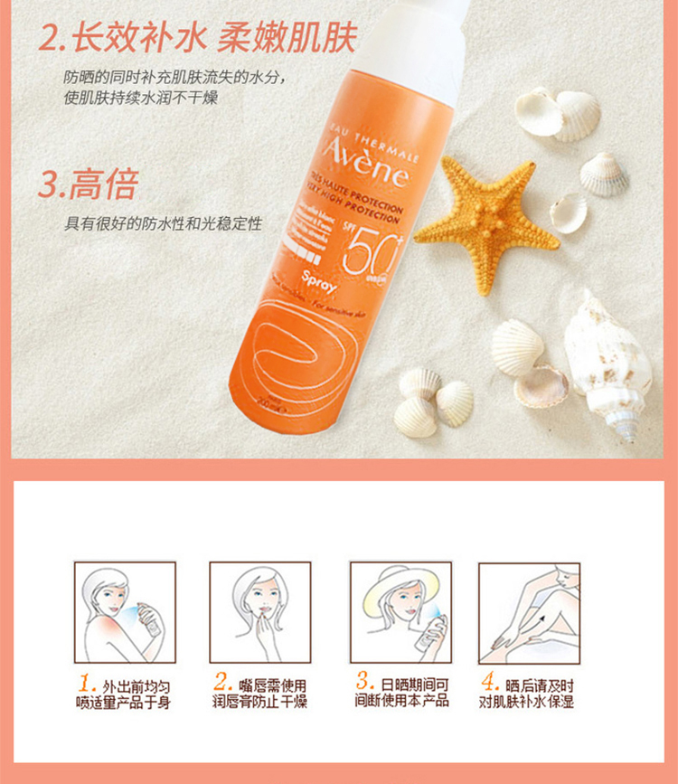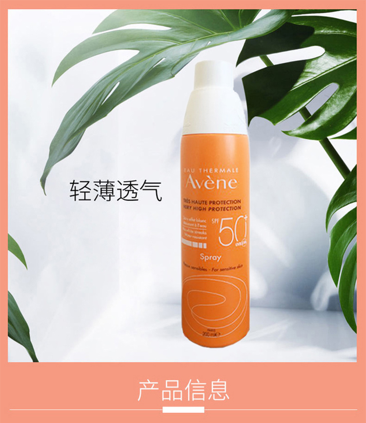 法国Avène/雅漾 清爽倍护防晒喷雾SPF50 200ml