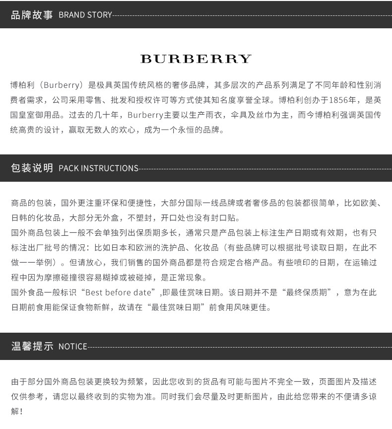 您所在的位置:首页 > 美妆护肤  > 香水彩妆 > 香水  > 【香港直邮】英国 Burberry/巴宝莉 红粉恋歌女士香水 EDT 50ml(新老包装随机发)