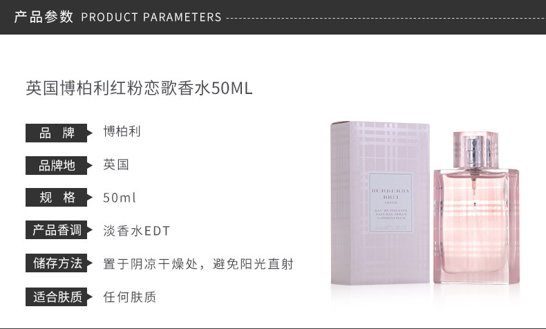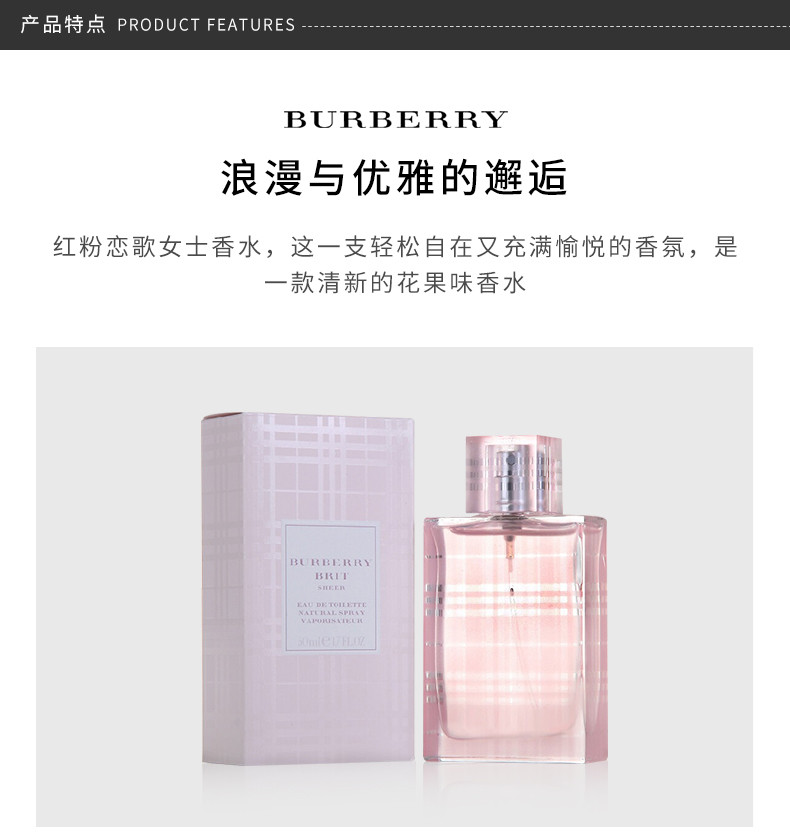 【香港直邮】英国 Burberry/巴宝莉 红粉恋歌女士香水 EDT 50ml(新老包装随机发)