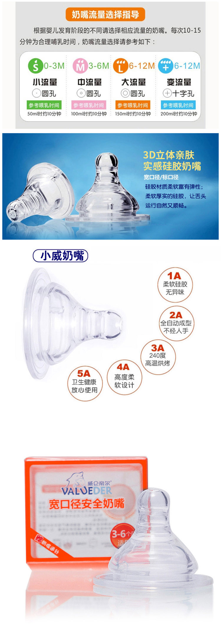 威仑帝尔 婴儿宽口径硅胶奶嘴 十字孔-可变速流量NZ015