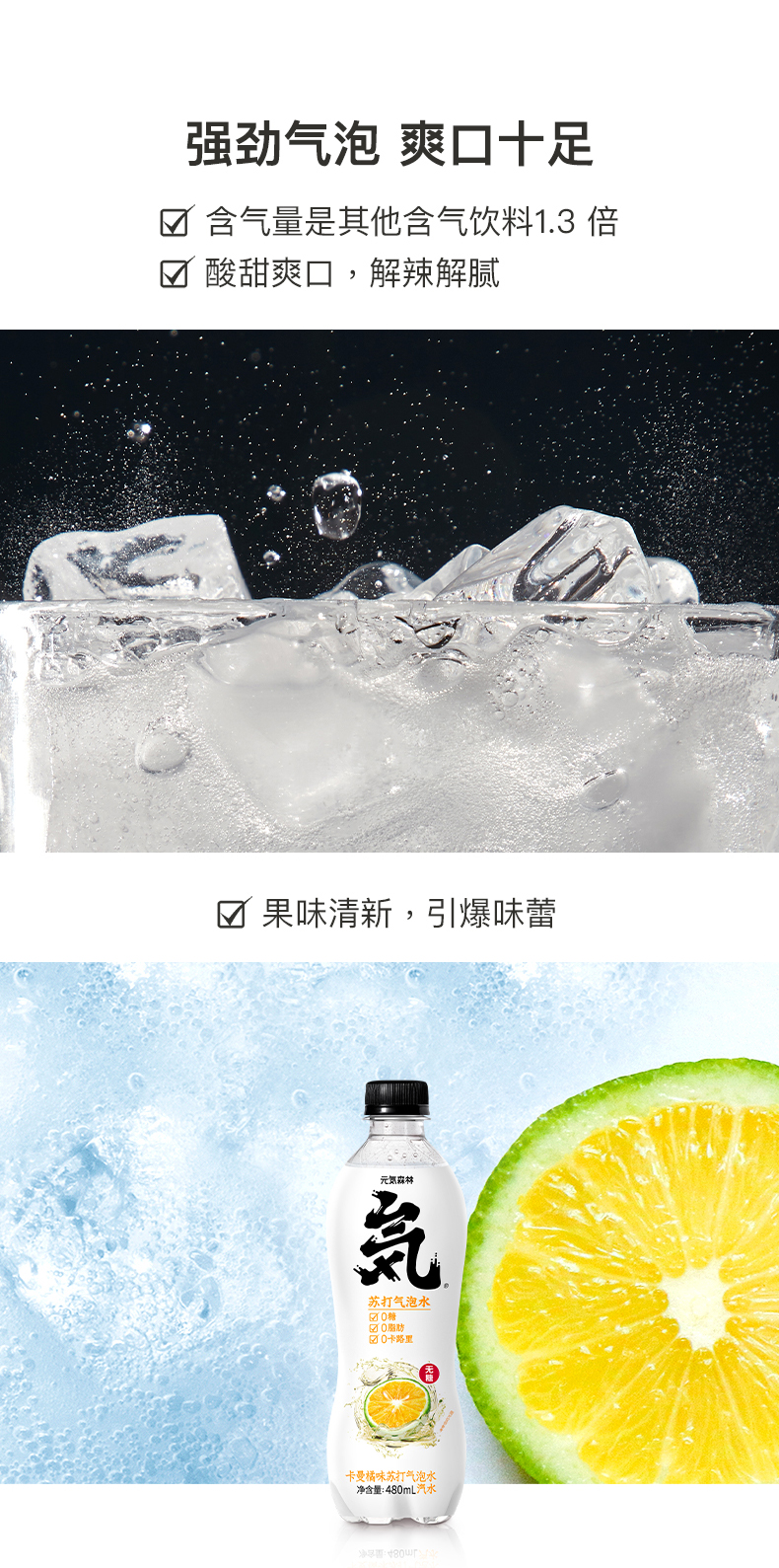 元気森林 无糖0脂 苏打气泡水饮料 480ml*5瓶 卡曼橘味气泡水