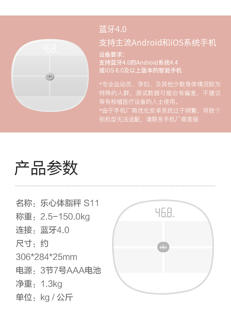【授权商品】中国乐心体脂秤S11白色