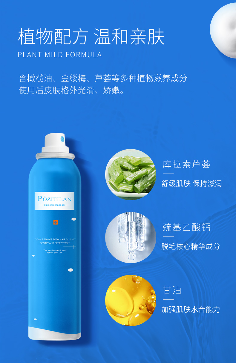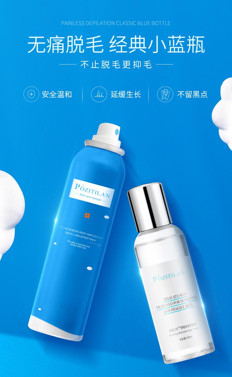 【爆款】 Pozitilan/泊紫汀兰 脱毛膏喷雾泡沫慕斯不永久全身去腋下腿毛腋毛私处神器男女士专用 脱毛膏120m