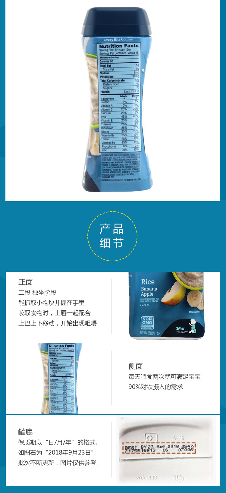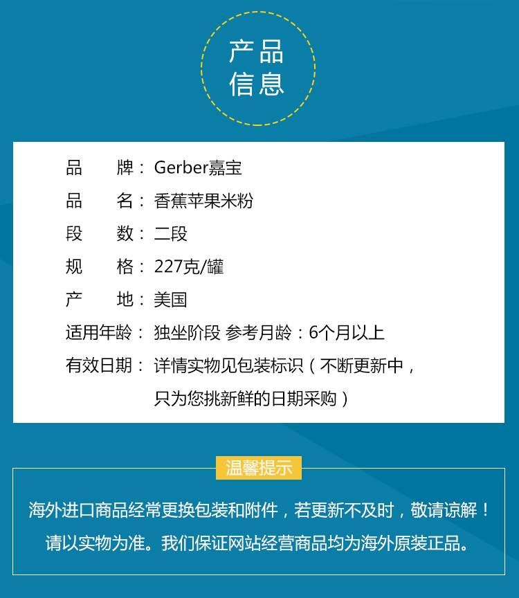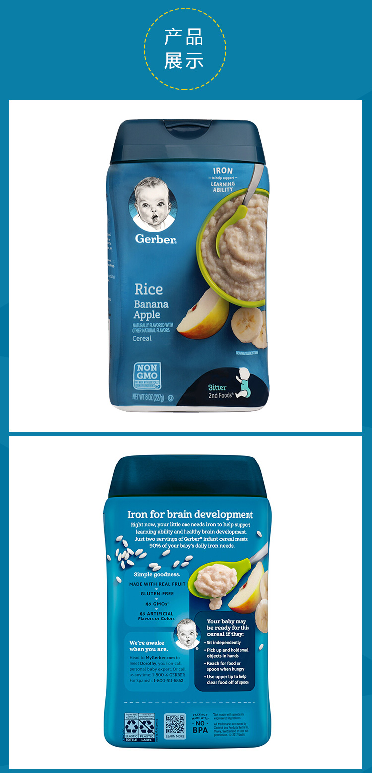【2罐/组】美国嘉宝gerber米粉2段香蕉苹果227g