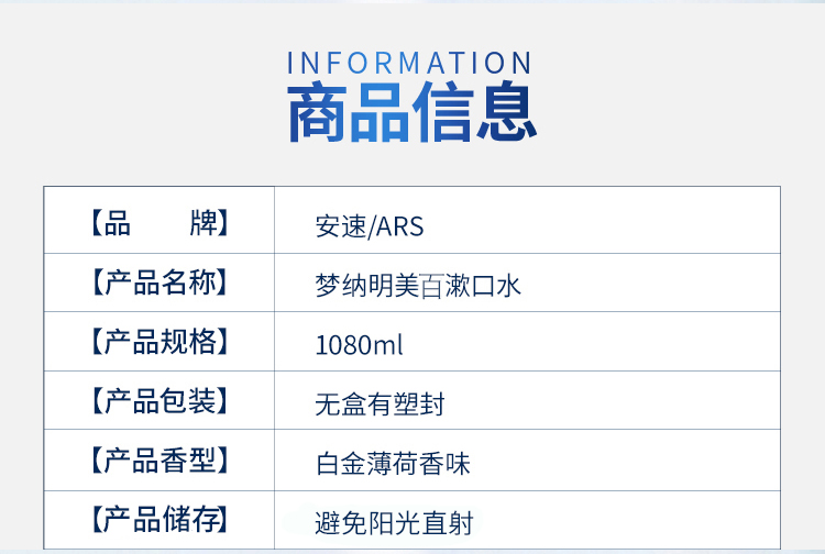 安速梦纳明漱口水1080ml 赠分装瓶 棉柔巾 赠品带