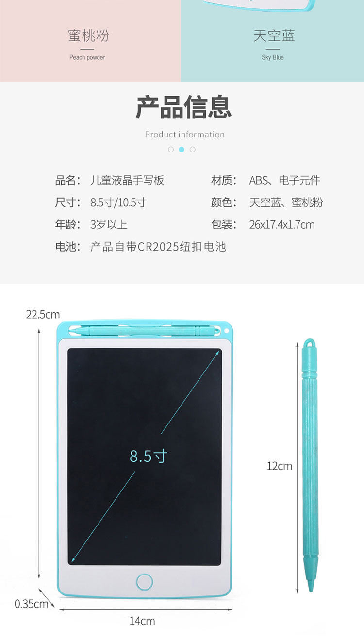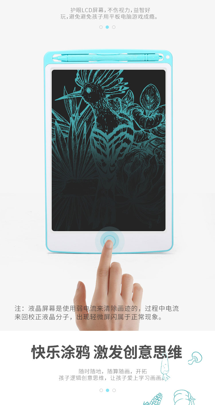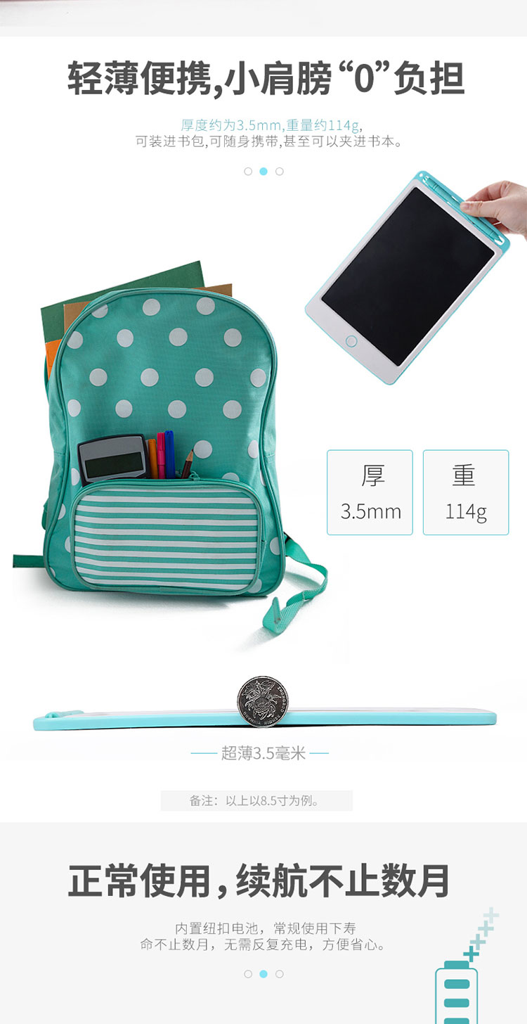 PDQ儿童液晶8.5寸手写板非磁性无尘涂鸦绘画一键清除电子写字板两色混发