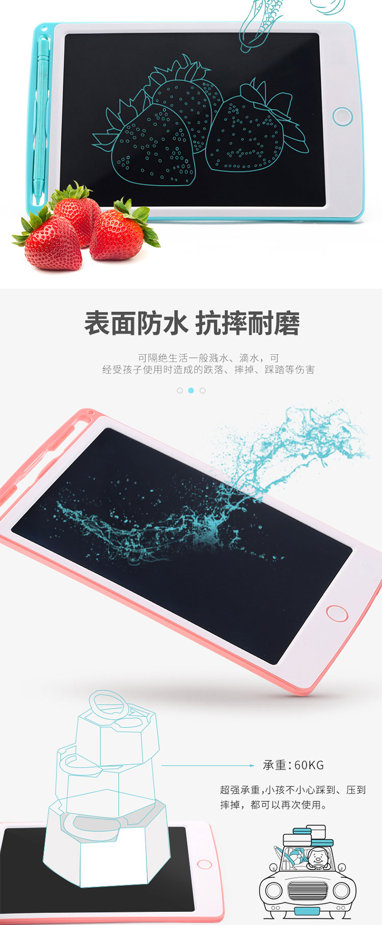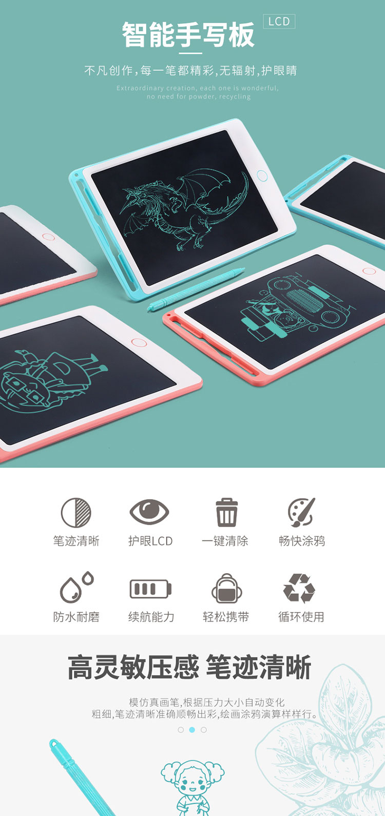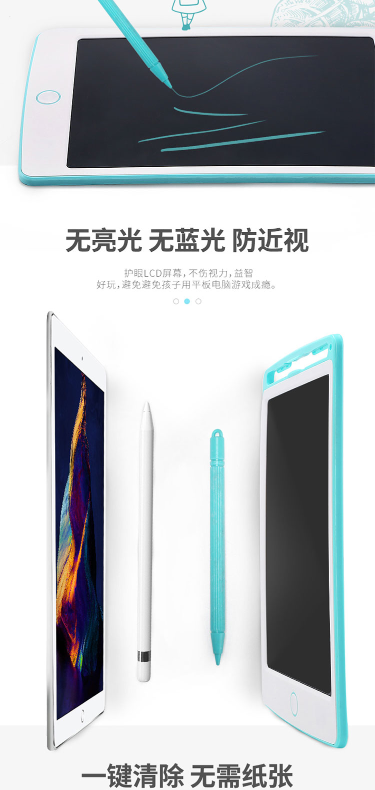 PDQ儿童液晶8.5寸手写板非磁性无尘涂鸦绘画一键清除电子写字板两色混发