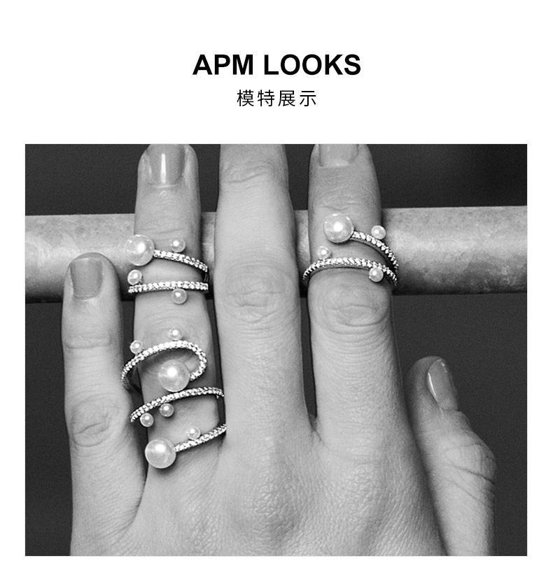 APM Monaco淡水珍珠戒指 情侣设计ins同款尾戒指环女情人节礼物 A17756XPL (下单备注尺码)