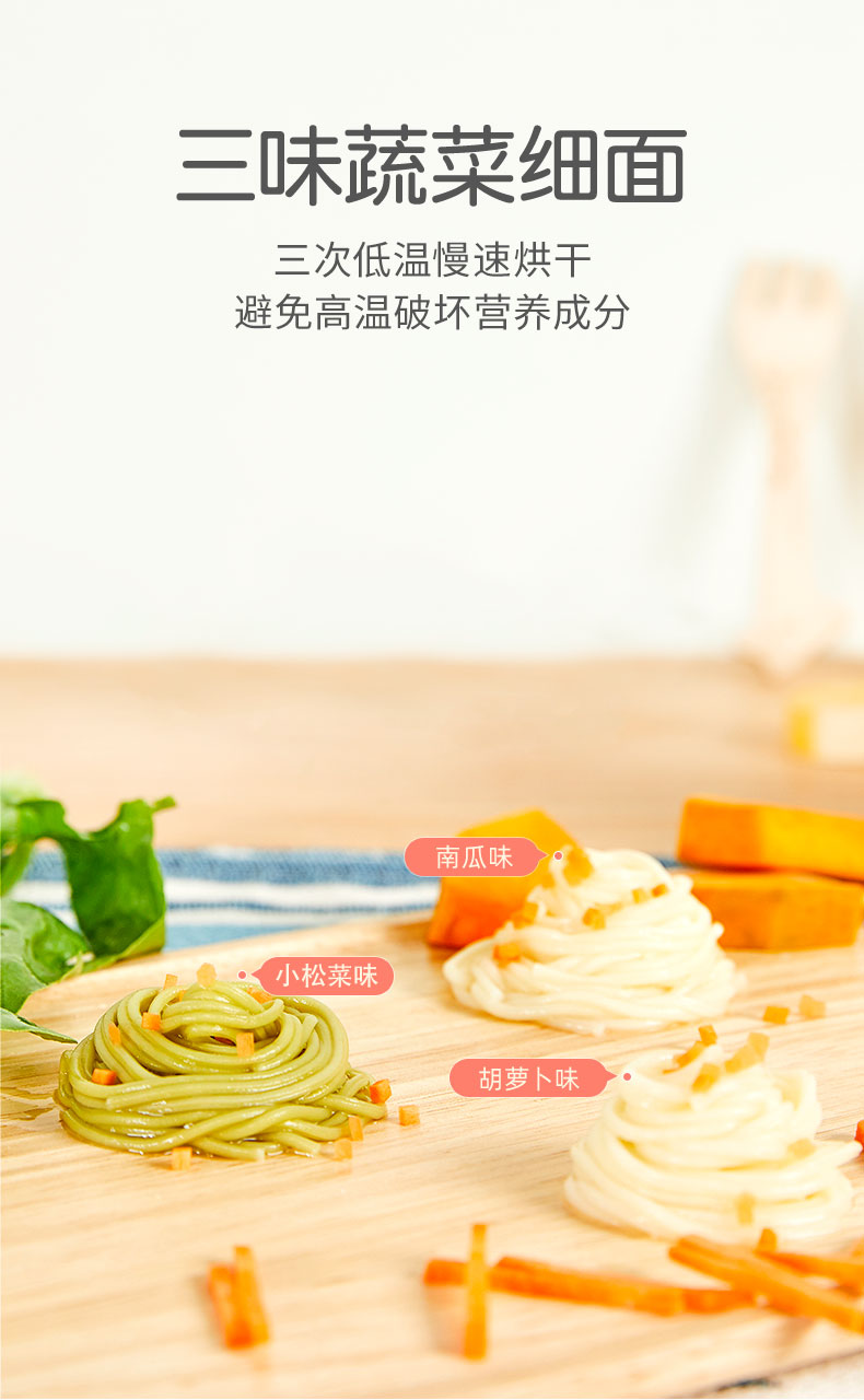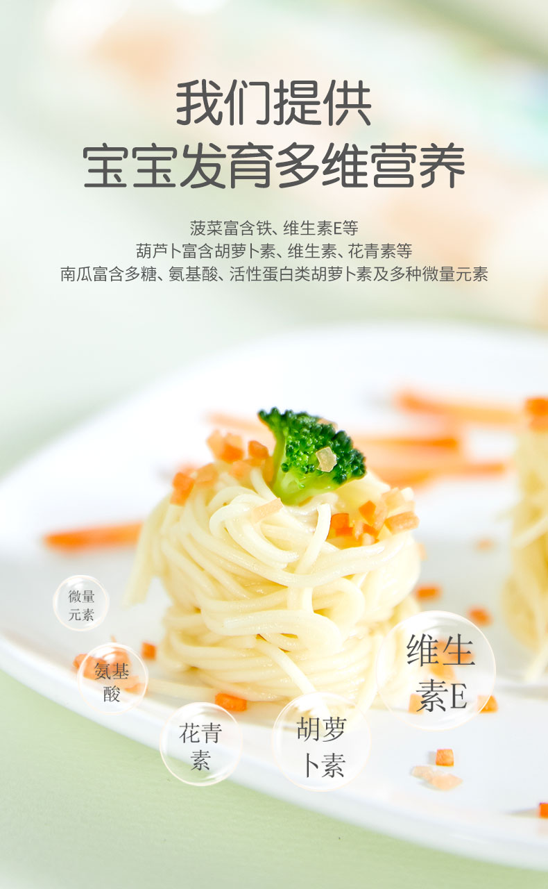 您所在的位置:首页 > 母婴用品  > 营养辅食 > 面条/粥  > 日本绿鼻子宝宝面条婴幼儿童营养蔬菜三色挂面辅食蔬菜细面300g
