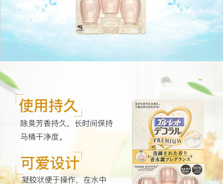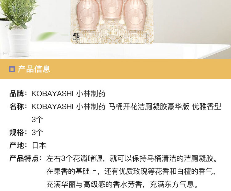 【日本直邮】KOBAYASHI 小林 马桶开花洁厕凝胶豪华版 优雅香型 3个