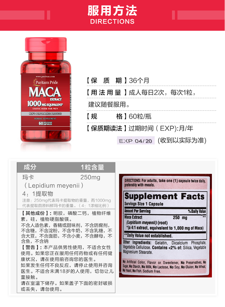 普丽普莱 玛卡精片/玛咖精华胶囊1000mg*60粒