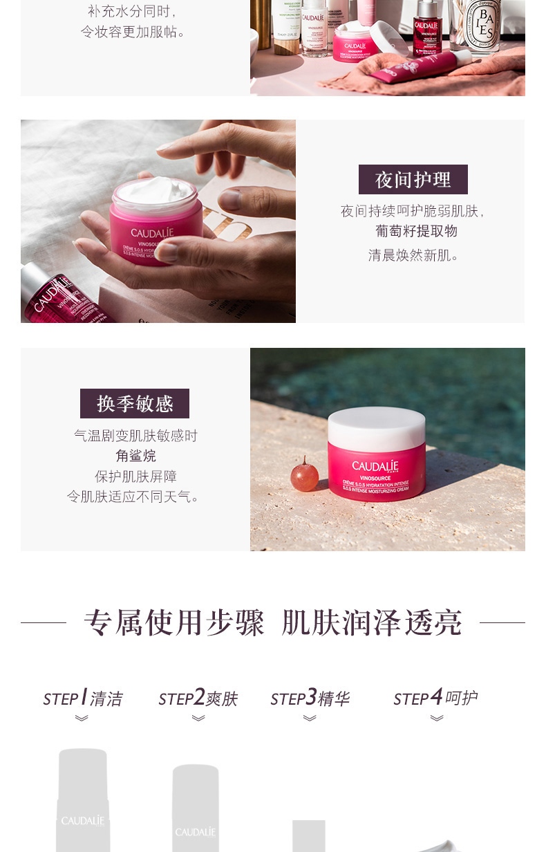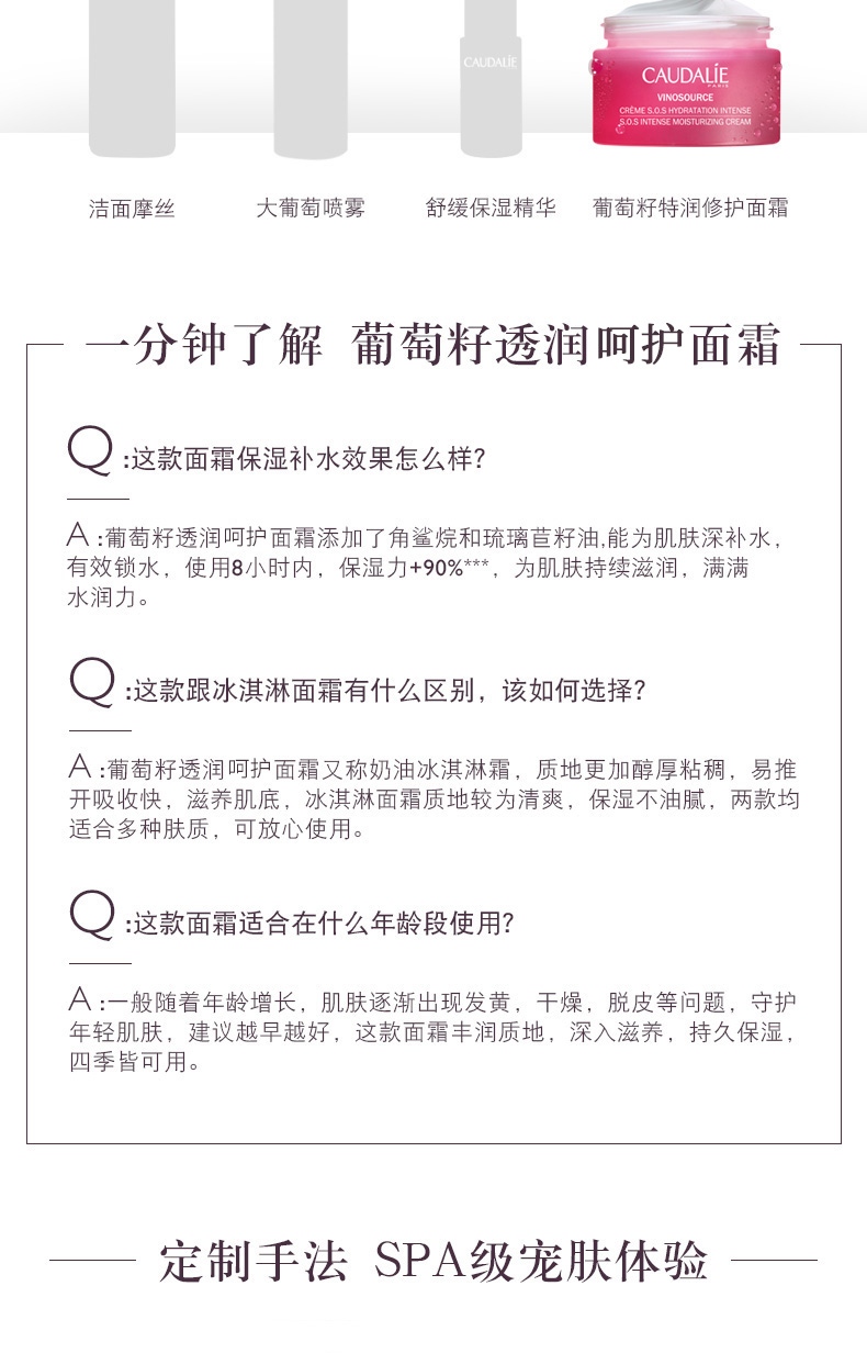 【法国直邮】 欧缇丽 Caudalie 葡萄籽透润呵护面霜 50ml(保湿呵护、舒缓滋润)