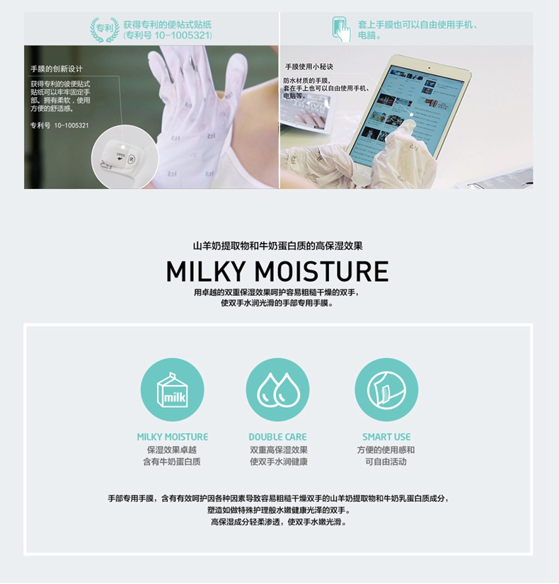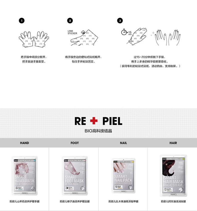 韩国repiel/莉碧儿滋润山羊奶手膜14ml*5片