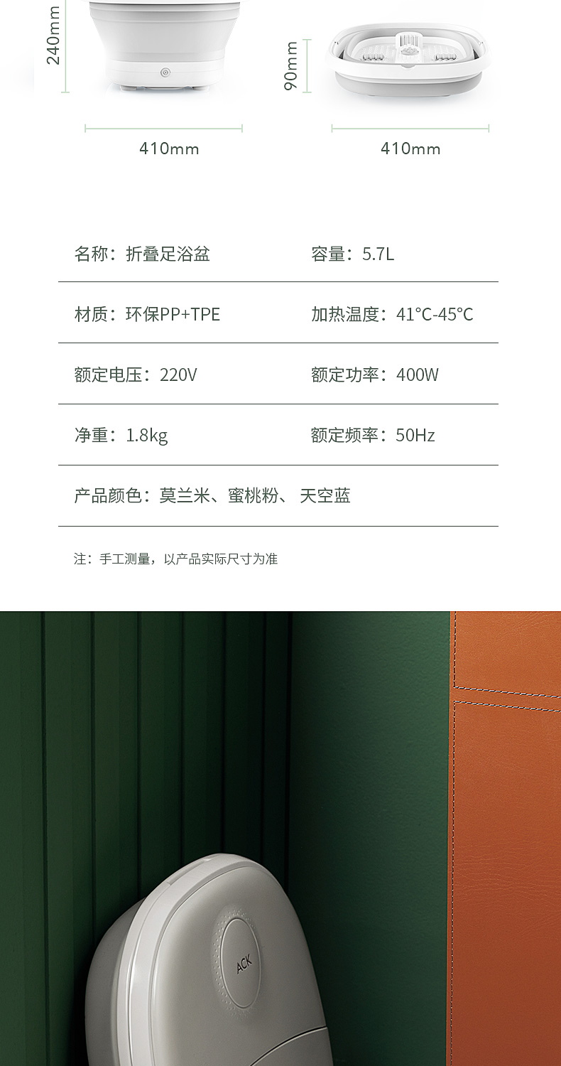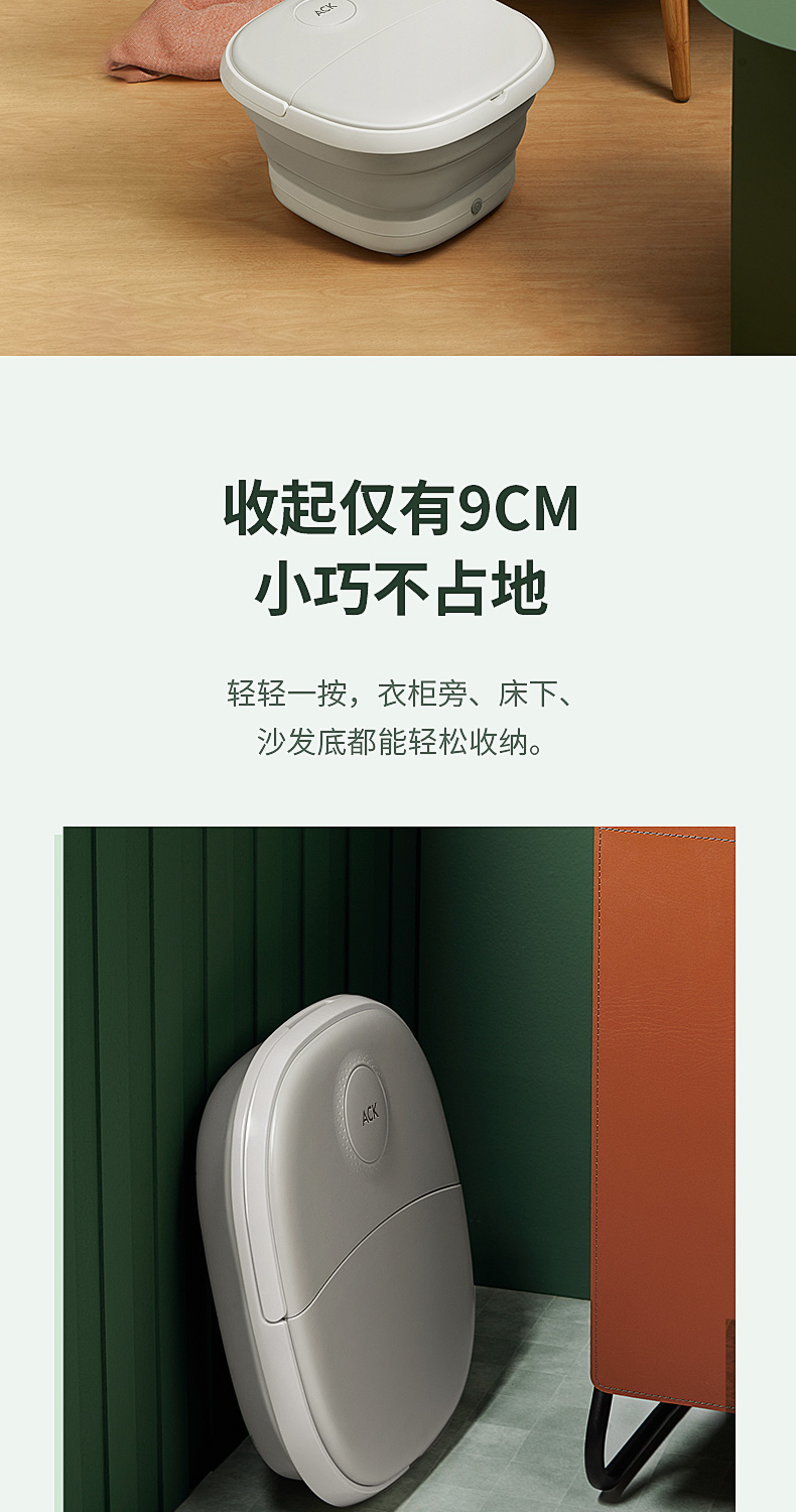 【爆款】艾斯凯可折叠泡脚桶家用按摩洗脚盆电动加热恒温足浴盆神器吴昕同款小型 白色