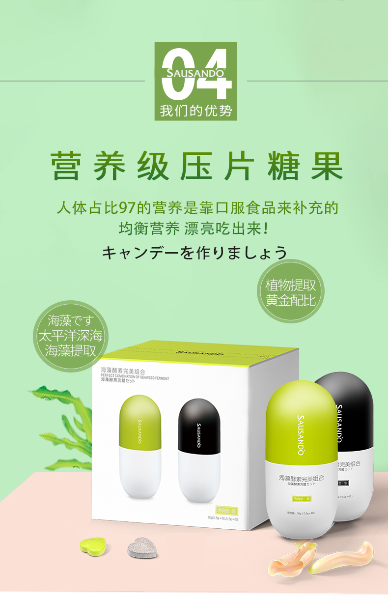 秀身堂海藻酵素完美组合(急救箱)60粒*2瓶