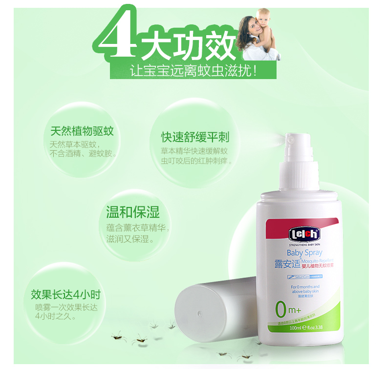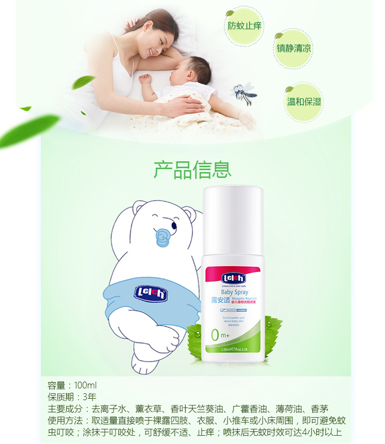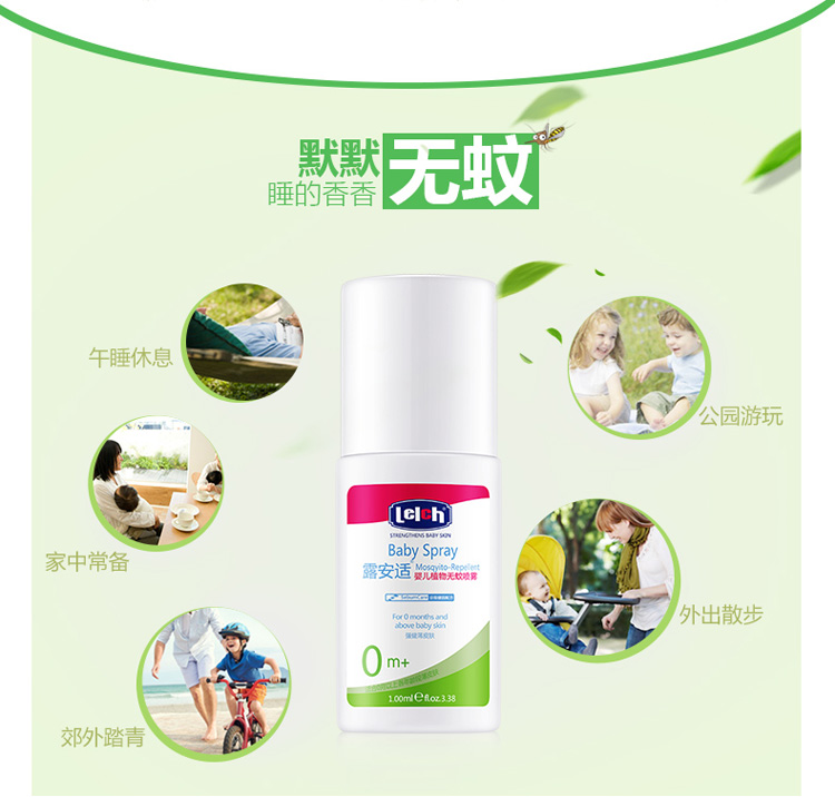 露安适(Lelch)婴儿驱蚊液 驱蚊喷雾 防蚊喷雾 防蚊液 防蚊虫叮咬 宝宝防蚊水 防蚊虫叮咬 100ml