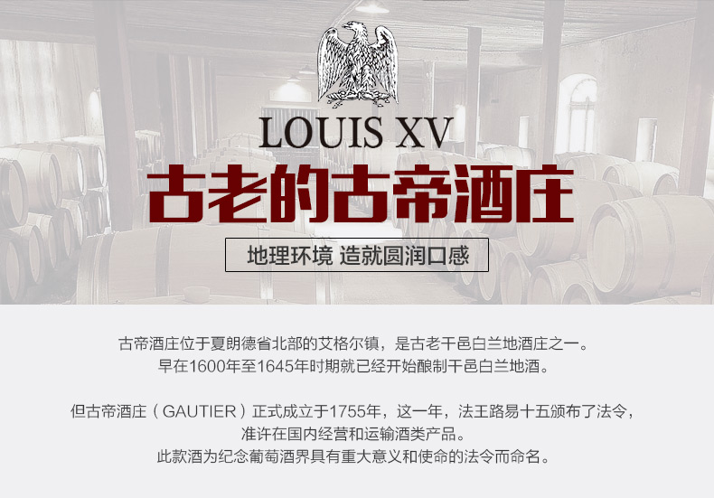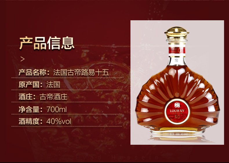 您所在的位置:首页 > 休闲食品  > 洋酒 > 白兰地/干邑  > 古帝路易十五法国原瓶进口XO白兰地 700ml*1瓶 礼盒装