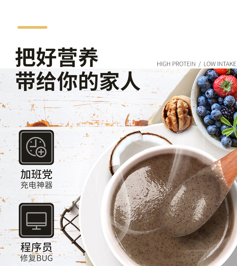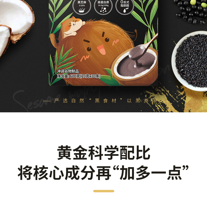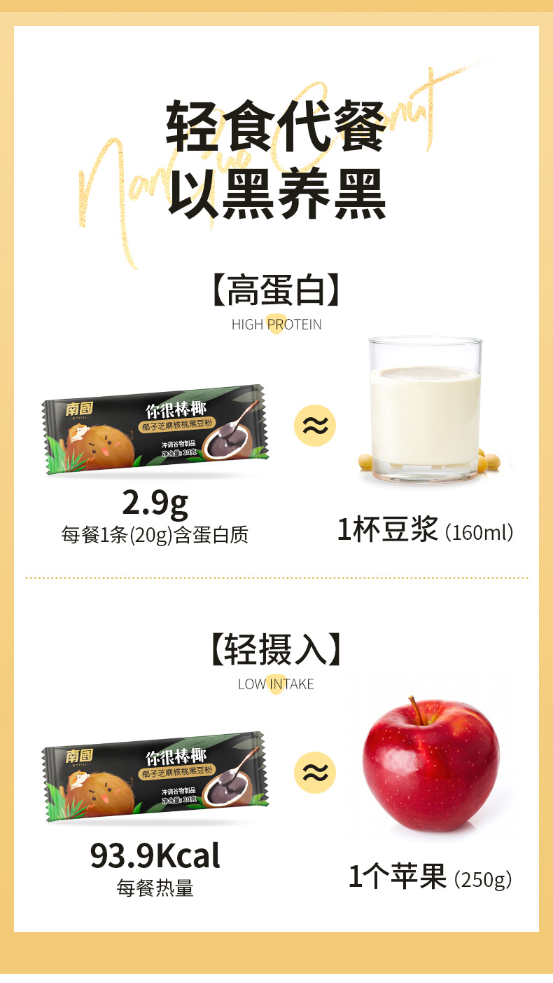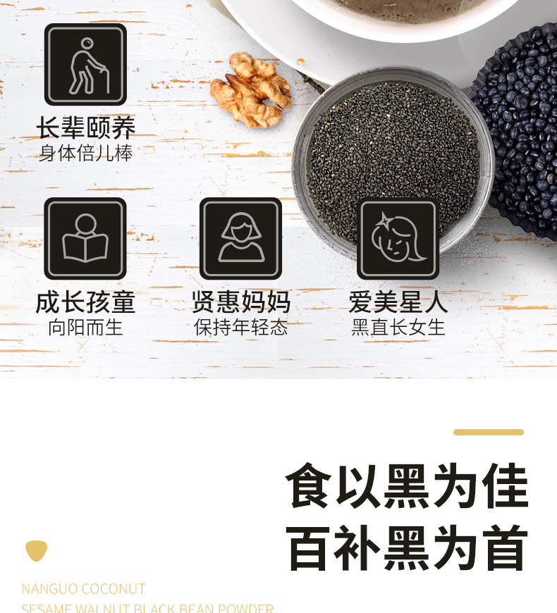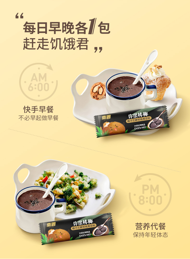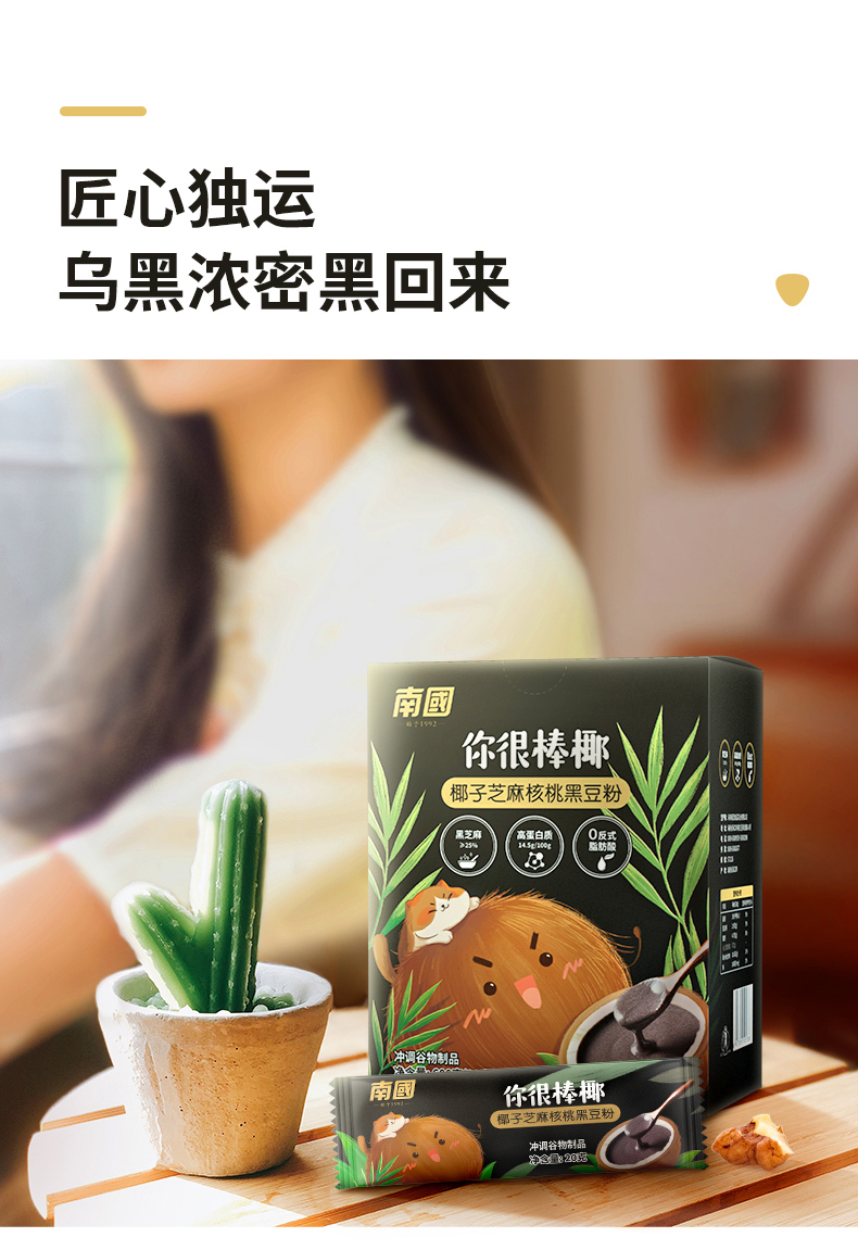 中国 南国 椰子黑芝麻糊核桃黑豆代餐粉600g熟即食早餐速食懒人食品五谷杂粮